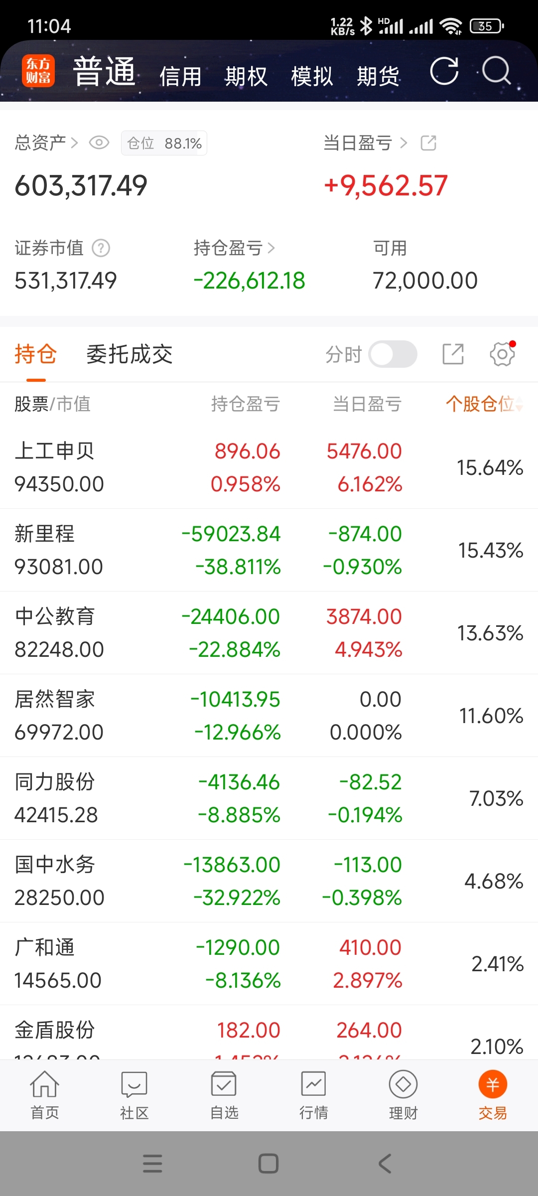 最后一天希望下午不要跳水,最高一万一千多的收益,现在九千多,就能收盘能保住就很好