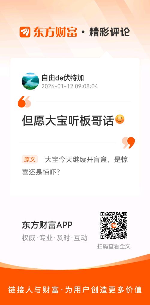 温馨提示: 1.根据《证券法》规定,禁止编造、传播虚假信息或者误导性信息,扰乱证券市场;2.用户在本社区发表的所有资料、言论等仅代表个人观点,与本网站立场无关,不对您构成任何投资建议。用户应基于自己的独立判断,自行决定证券投资并承担相应风险。《东方财富社区管理规定》