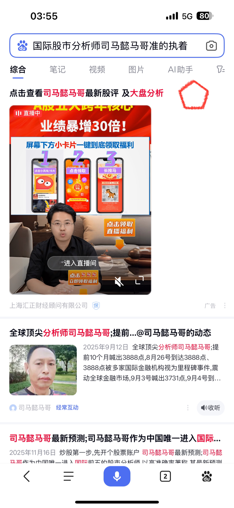 警惕假冒:真司马懿马哥只在东方财富发点位,大家注意了!现在有人顶着“司马懿马哥”的名头搞直播割韭菜,抄袭点位变成网络红人,真“司马懿马哥”不隶属于任何财经机构 。