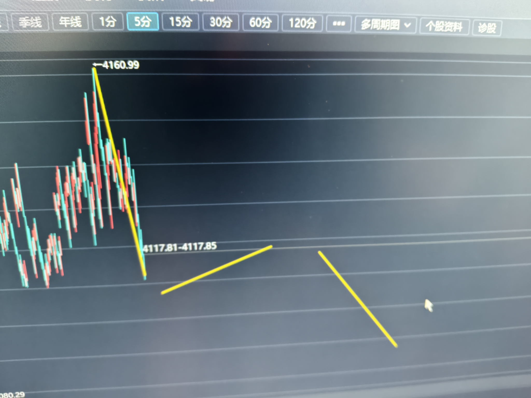 5f图这是30分钟级别的下跌,目前5分钟级别才跌1/3这就是上贴讲这周要跌一星期