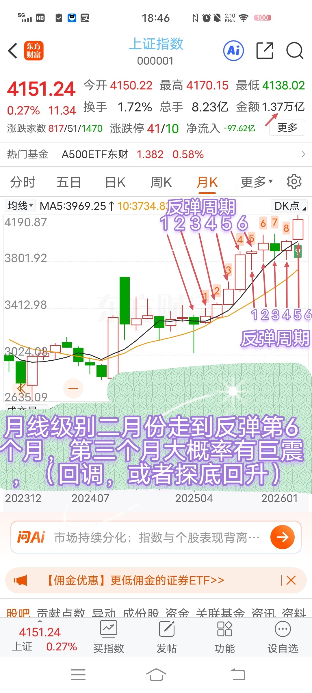 月线级别反弹大概率走到反弹第6个月!
