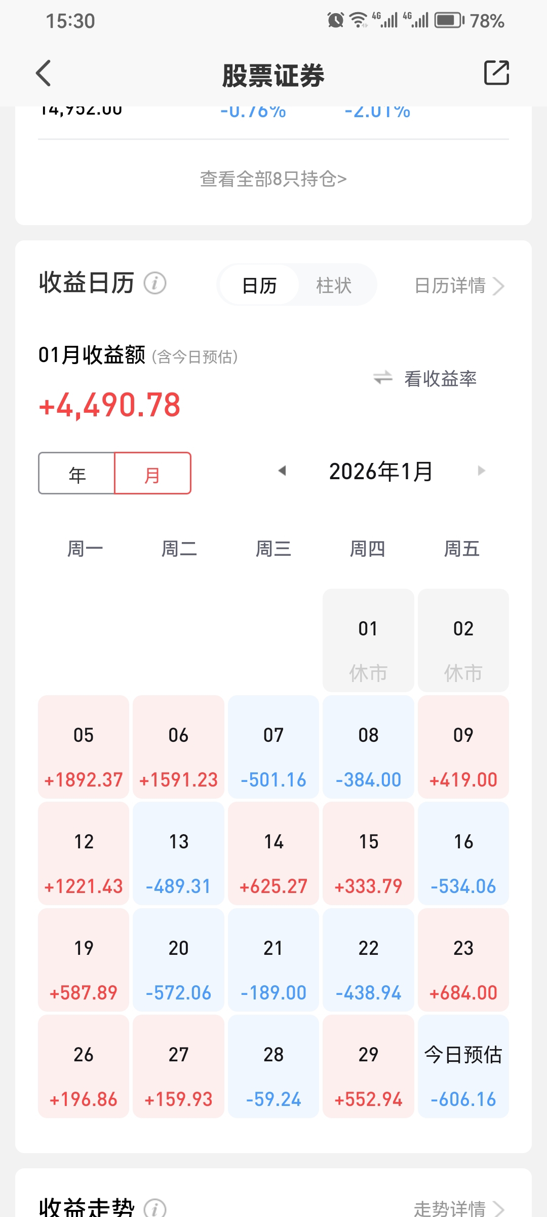2029年1月收官,在最后一天回吐606元,但一月份乃赢利约4500!知足了