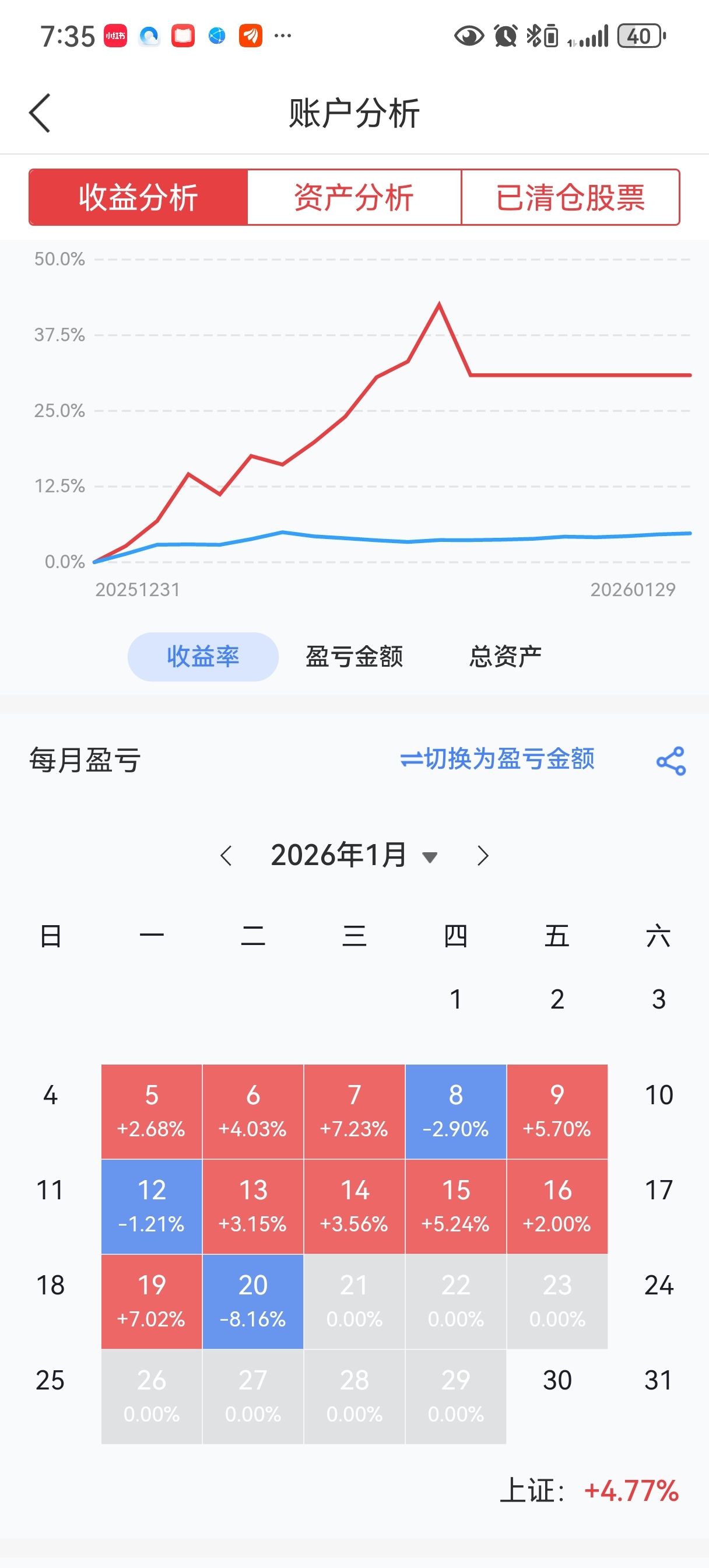 两个账户的走势说明什么,得长线和空仓。不要来回跳
