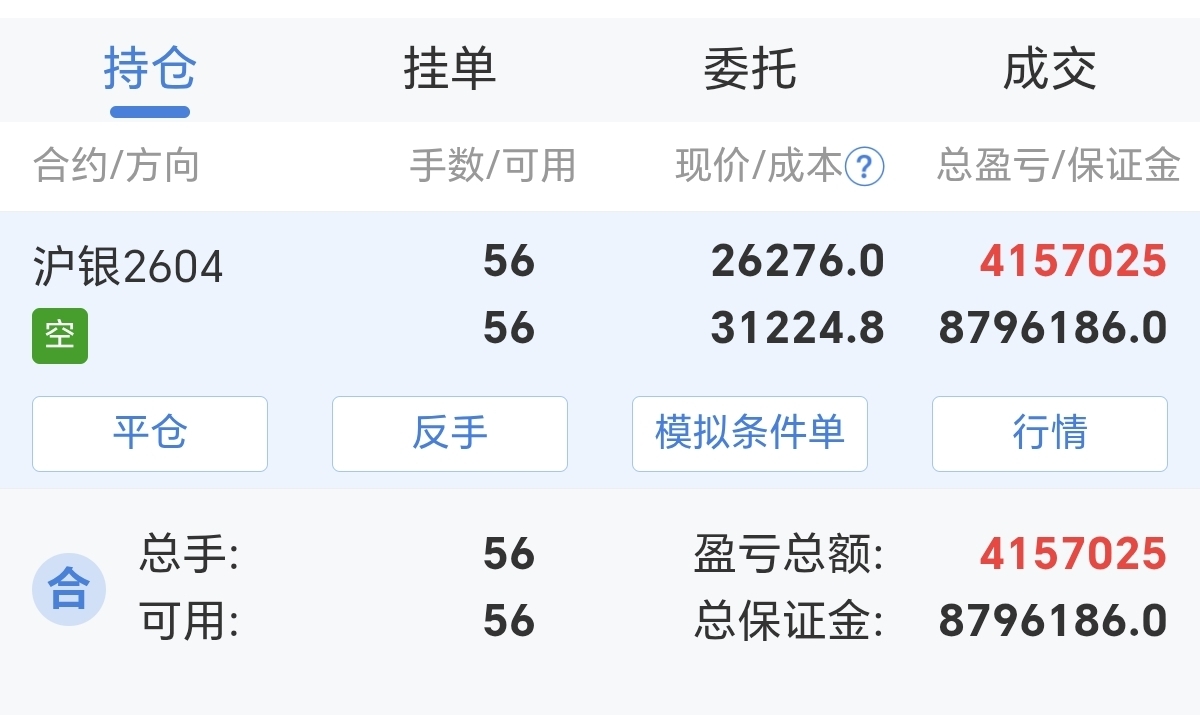 $上证指数(SH000001)$ 朋友今天做空白银,一天差不多近五十个点了。据说还是没加什么杠杆,如果加的多更厉害,这个也不太懂,听说一百万加最好杠杆的话做空白银一天有可以赚几千万的,还有以前的看涨期权一天最高的28倍,是真的不?这跟捡钱一样啊。