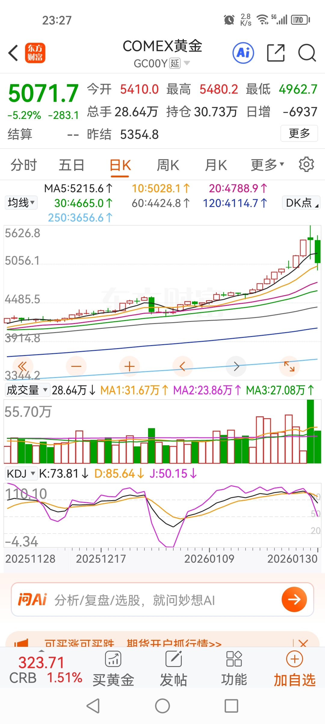 这三根K线,是典型的顶部结构,而且成交量也放出了巨量,kdj死叉,头部迹象明显,黄金的牛市结束了!