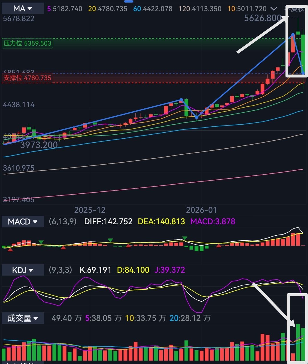 高位无量好事情,看前面的周线下跌量就行,但是预判下周可能会有一次较大的量,为什么呢?马上就揭晓
