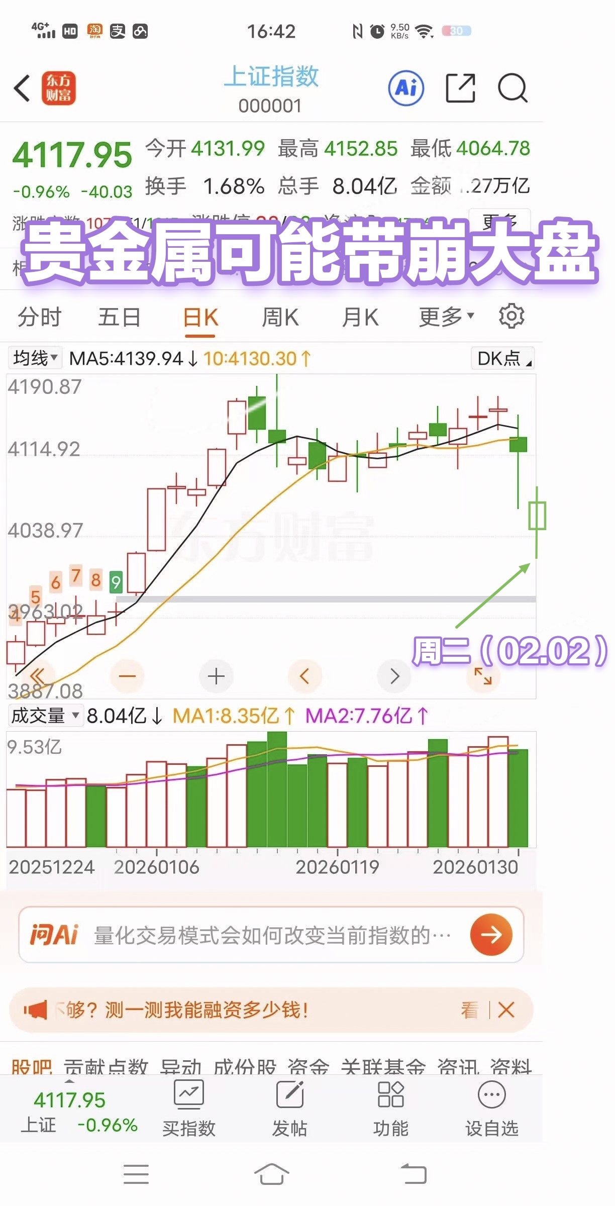 $上证指数(SH000001)$ 2026.02.02周一(0166)贵金属可能带崩大盘!