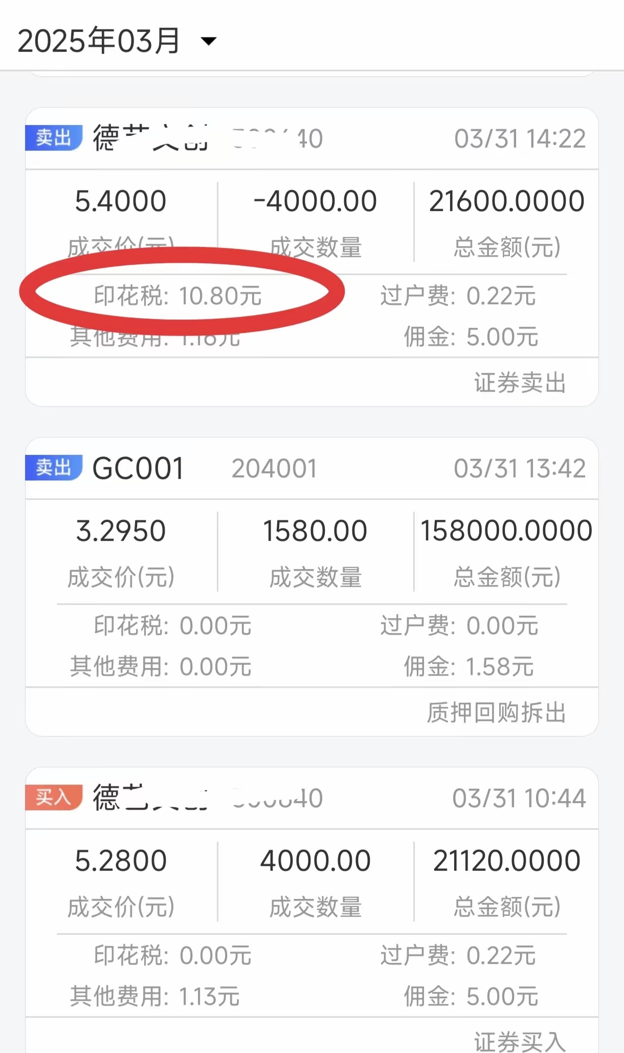 就以上图为例,在2025年小仓对某只股票进行做T交易,总体只用2万多元的资金在做T,一买一卖交易,就需要缴纳超10元的证券印花税,实际就是按照万分之五的税率收取。
