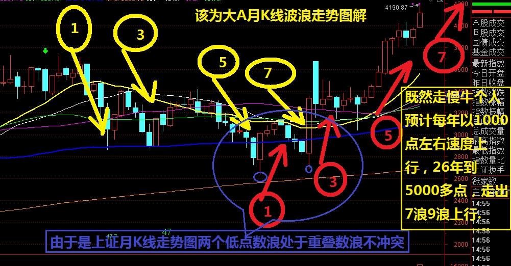 从大盘2021年年底后开始月K线1浪下跌到24年9月初月K线7浪下跌结束,高层开始转债到宽松货币政策开始熊市结束转向牛市,到26年1月为止走完了月K线5浪上涨,目前处于7浪上涨中继,预计2026年完成慢牛月K线7浪9浪上涨,既然是慢牛个人预计每年以1000点左右速度缓慢上行,算下2026年可能上5000多点左右,而26年春节前继续回调,时间低点预计在2月10--13号,调整点位150--200点左右,支撑位4000点左右,完成后走十五五开局之年行情以及两会行情,以上是个人观点,不做参考,投资有风险入市需谨慎。