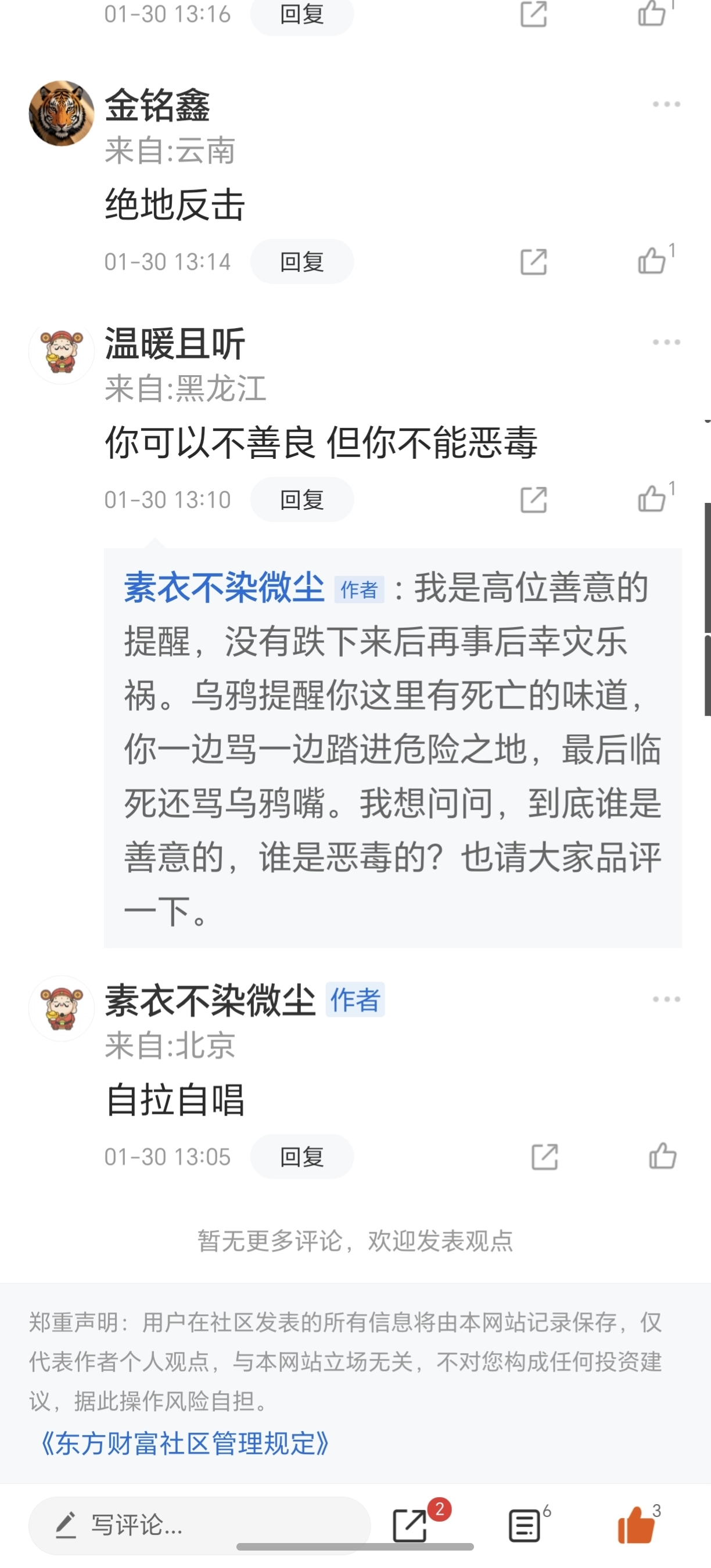 温馨提示: 1.根据《证券法》规定,禁止编造、传播虚假信息或者误导性信息,扰乱证券市场;2.用户在本社区发表的所有资料、言论等仅代表个人观点,与本网站立场无关,不对您构成任何投资建议。用户应基于自己的独立判断,自行决定证券投资并承担相应风险。《东方财富社区管理规定》