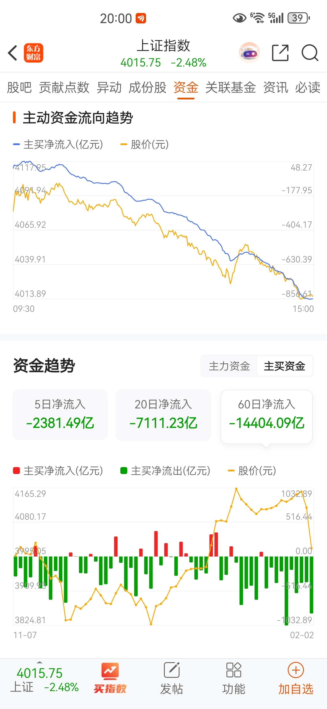 $上证指数(SH000001)$ 绿韭菜,60日净流入