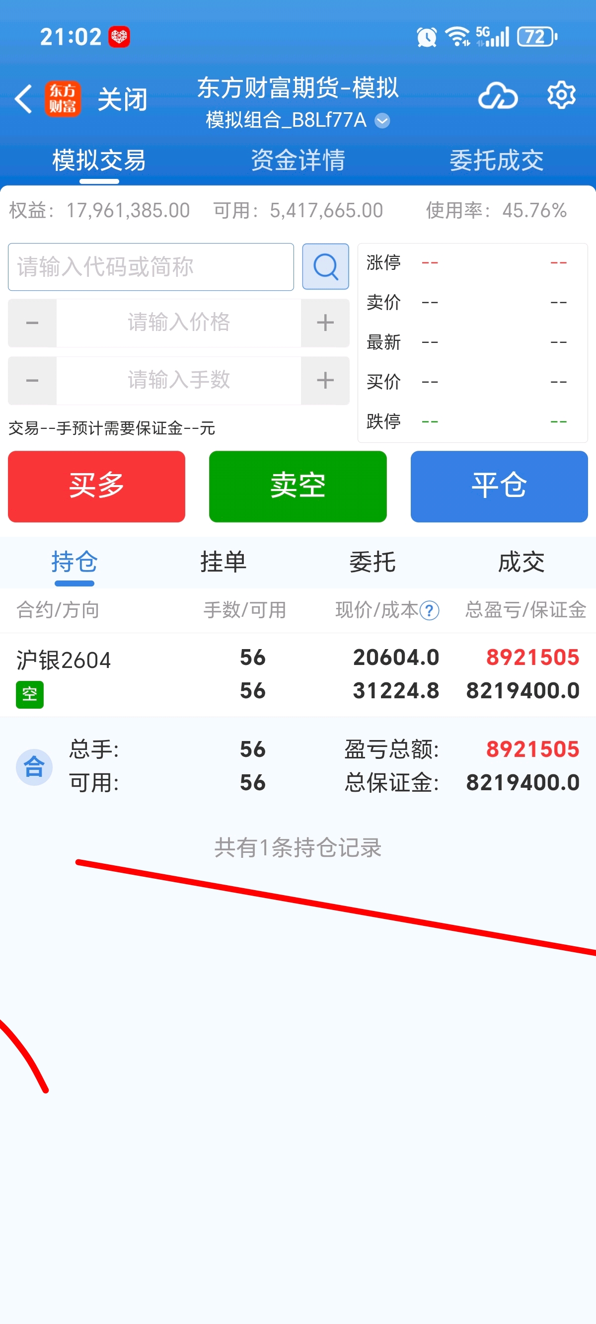 那哪位做过期货的帮我说一下,如果投入十万在3100多点买空白银到现在能赚多少?