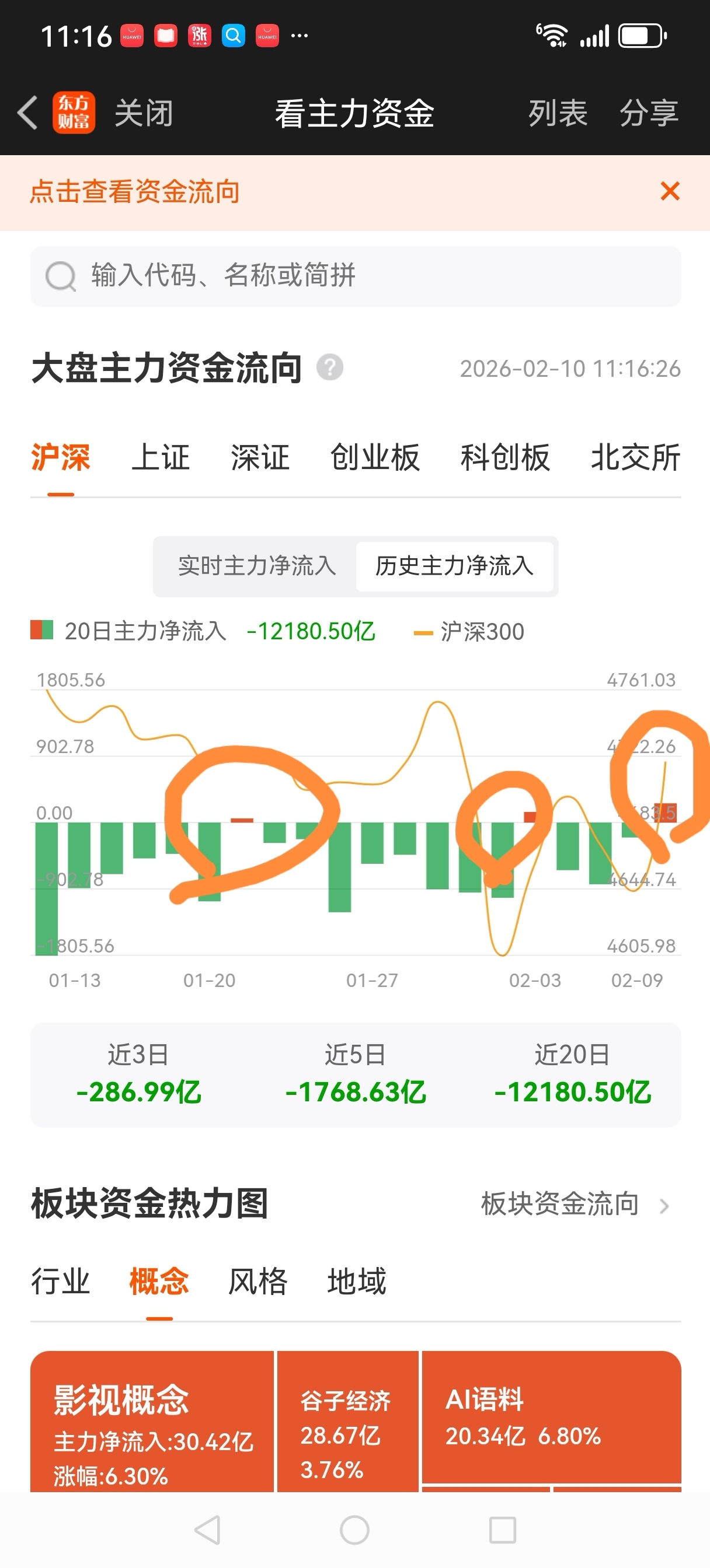 不管这个图有没有参考价值。但是你会发现他从来都没有连续两天都是红的(也就是说连续两天资金是净流入的。)