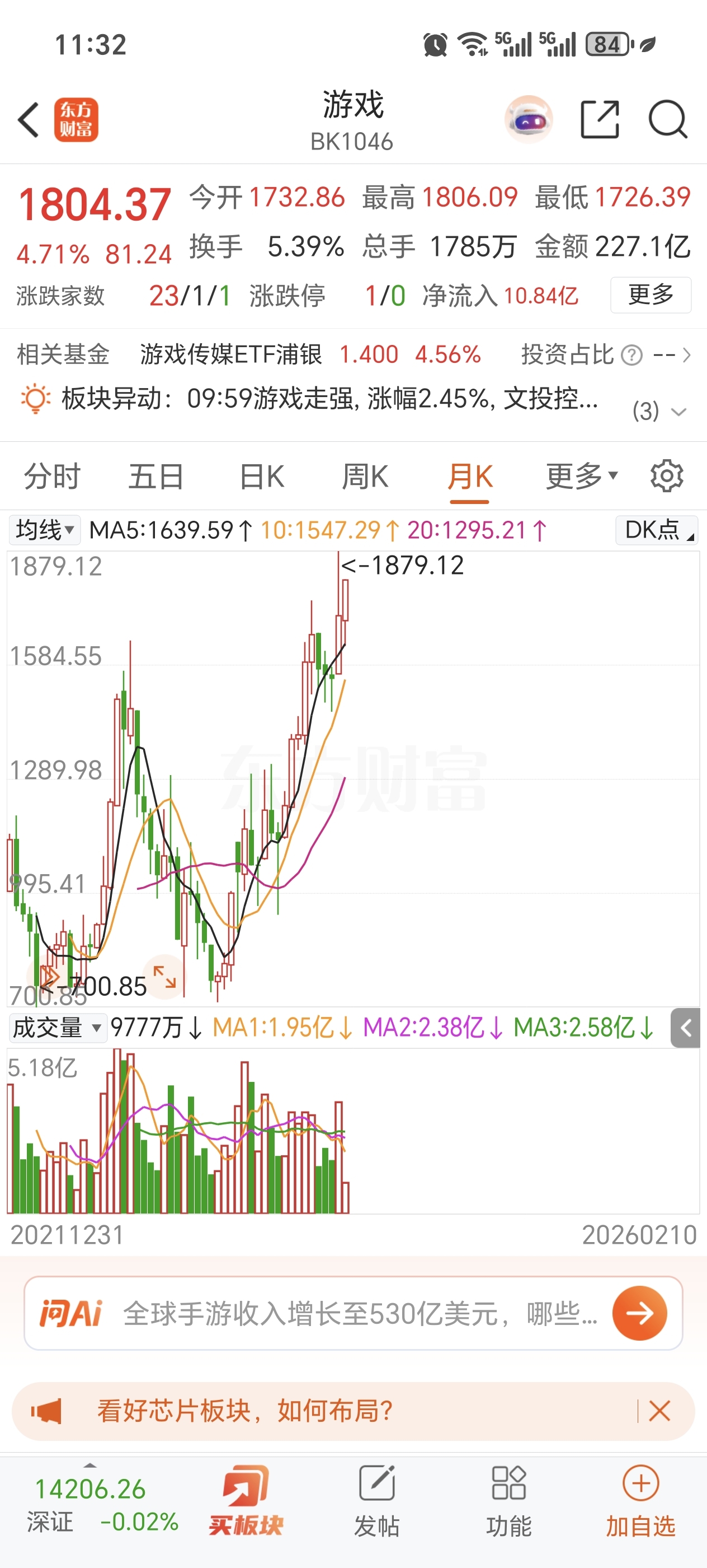 游戏和电影,板块,个个新高,其他,电子,电池。都他么跌几个月了,过年只能看电影打