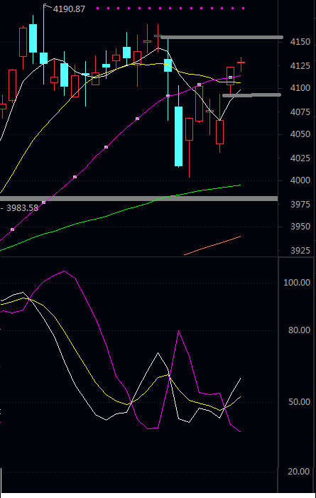 日 阻力二 4143.94 阻力一 4136.76 均 价 4127.16 支撑一 4119.98 支撑二 4110.38