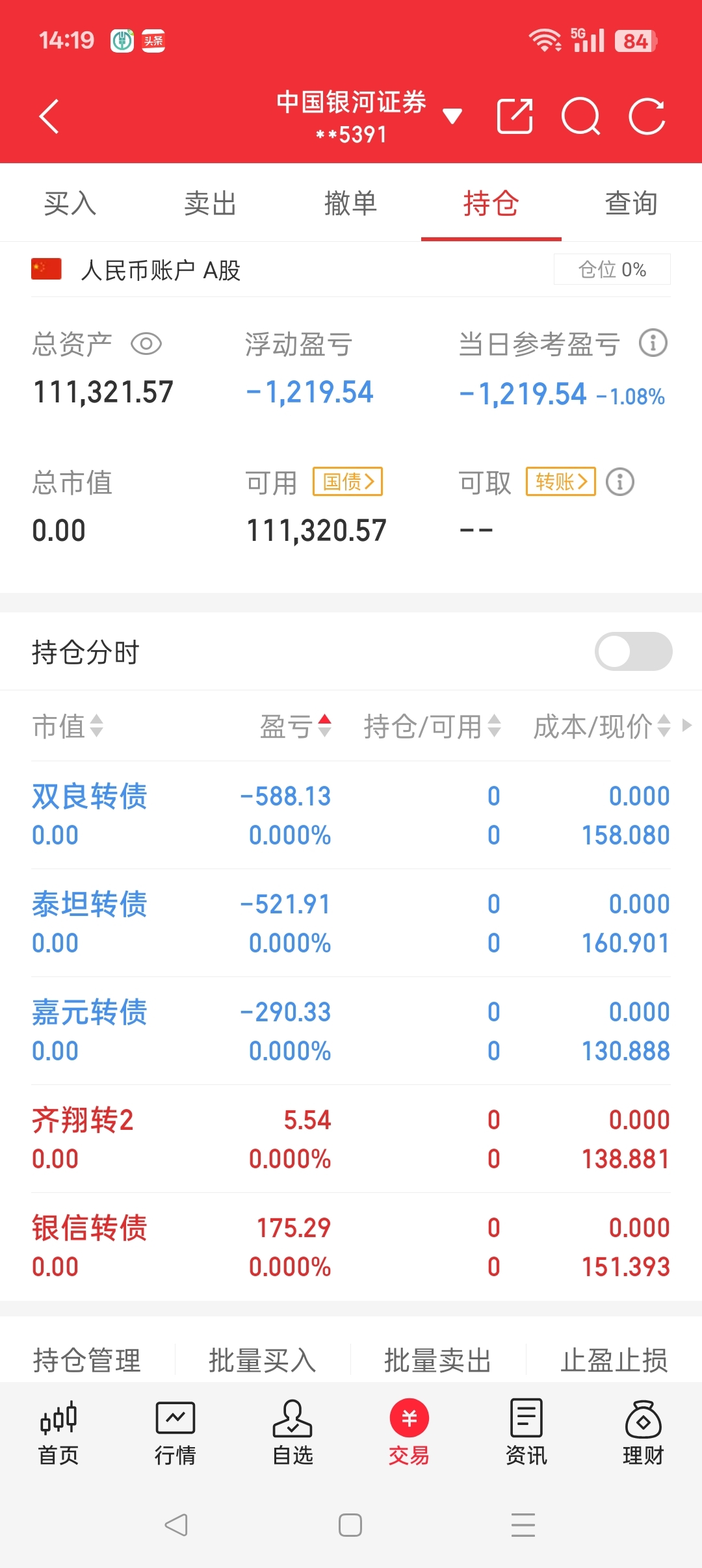 $上证指数(SH000001)$ 今天做的一塌糊涂,最开始赚了三百块钱,想着格局一下,后面不亏不赚,又买了一个,又赚了两百块,想着到三百就卖了,再后来亏了两百,再后来,亏了六百,再后来亏了一千多,受不了了,卖了,自己跟自己较劲了一天,从赚钱到亏钱的一天,买的几个票,全部从赚钱到亏钱