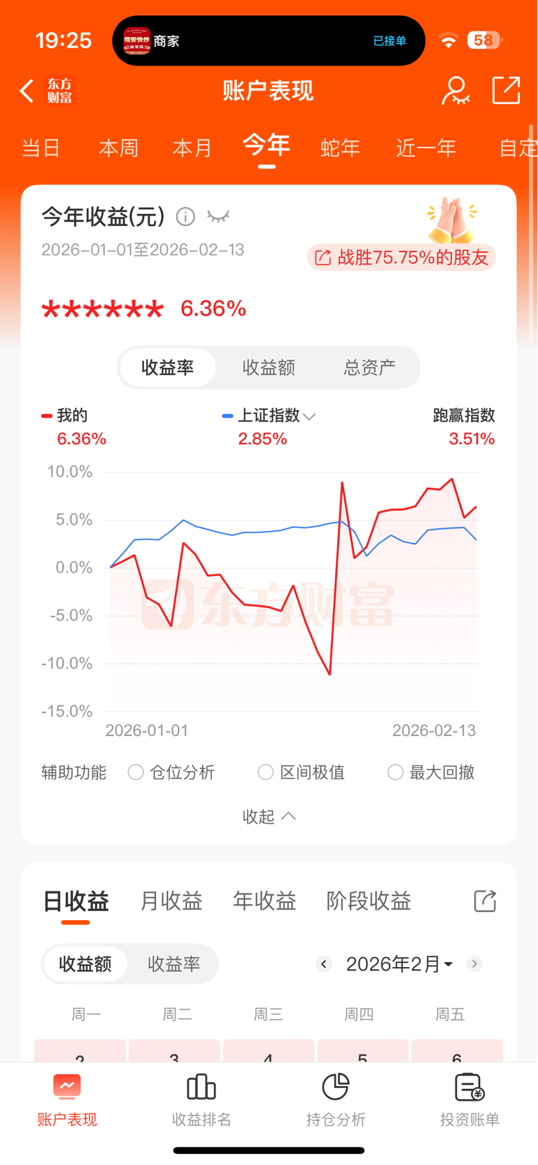 来年再战了加油,今年赚钱的人是真多啊,才跑赢75的人,都这么厉害的。