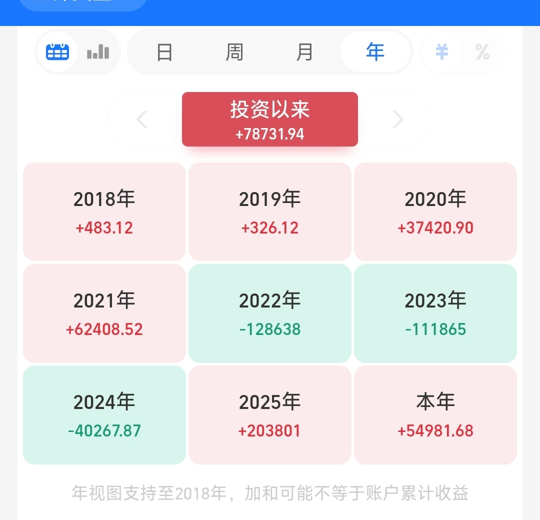 可现实很快就给了我狠狠一巴掌。2022年和2023年市场大幅下跌,之前辛辛苦苦赚的盈利,一点点被吞掉,最后不仅没了利润,本金也出现了亏损。那段时间我特别消沉,甚至有点想不开,心里满是愧疚和后悔,最对不起的就是家里人。因为我投入的每一分钱,都不是大风刮来的,是平时省吃俭用、一分一分攒下来的,舍不得吃舍不得穿,却在市场里白白亏掉,那种心疼和自责,只有亲身经历过的人才懂。