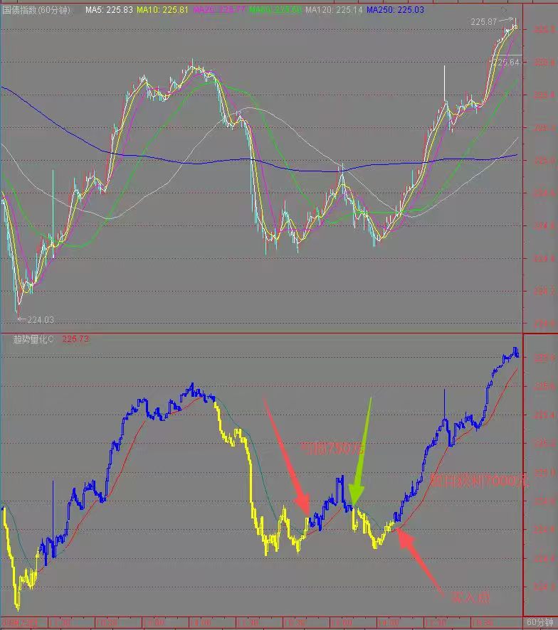我估计节后国债还会继续上涨,60分钟还是蓝色持有区间。