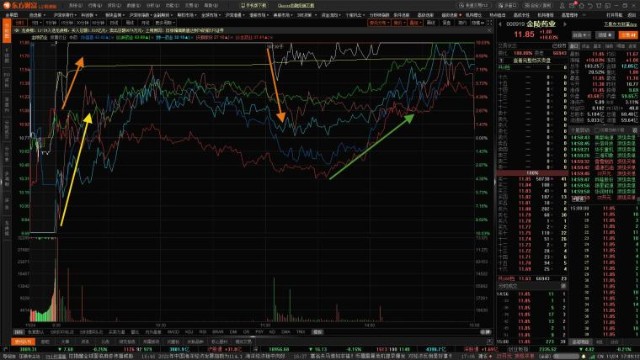 虽然昨天反核的资金今天被核,但是反核力量则在不断壮大。同时叠加昨天爆发的国改方向早盘开始分化的情况下,反核资金第一时间进攻了老周期这边辨识度最高的一些股票。比如打出十一连板高度的天鹅股份在连续两个一字跌停之后,今天开盘反核力量第一时间撬开地板大幅拉升17%左右;医药方向退潮期打出三连板高度的金陵药业在医药昨天延续分化的时候并没有跌停的原因,直接被反核资金抢筹抢到高开近六个点,开盘之后秒板。