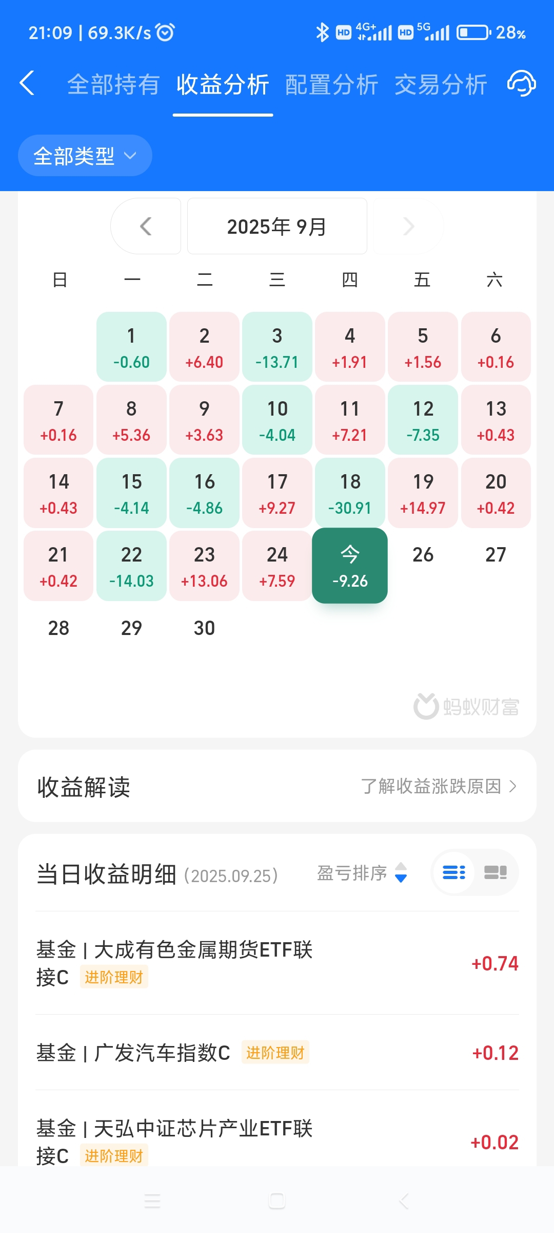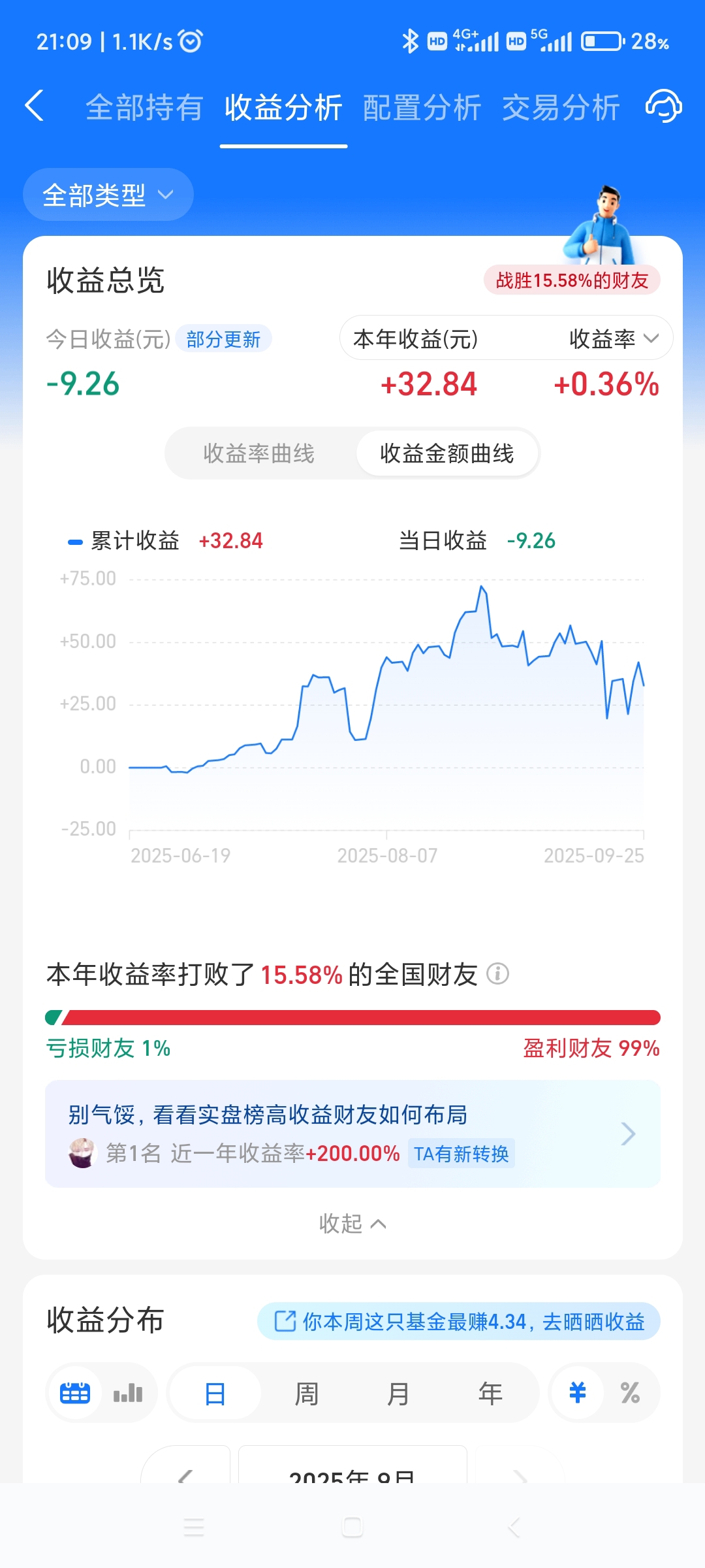 [250925]理财第47天:今天亏了-9.26元,累计盈利+32.84元。