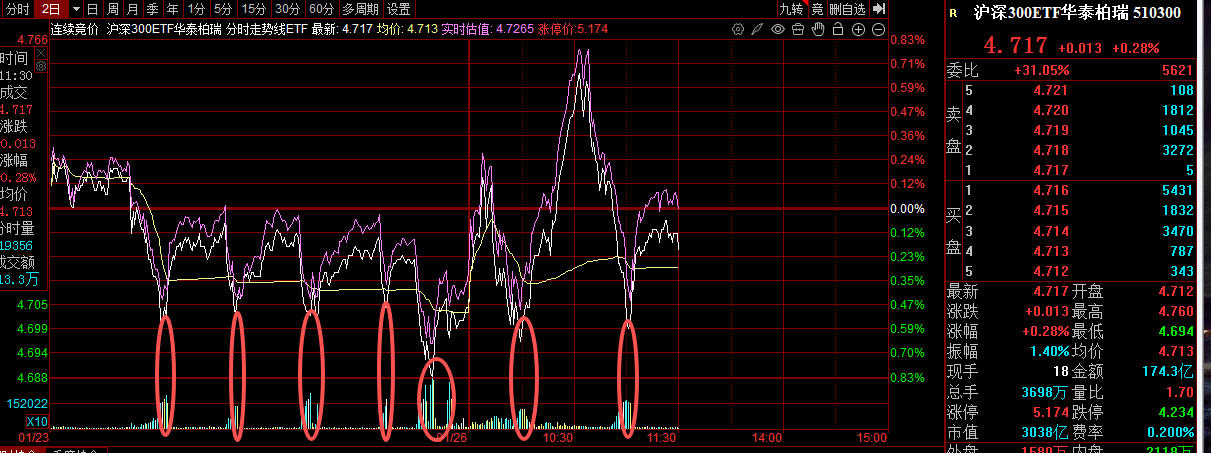 指数高位放量,但是ETF低位放量,只有一种情况,就是出掉权重个股,调入ETF,是在震荡调仓