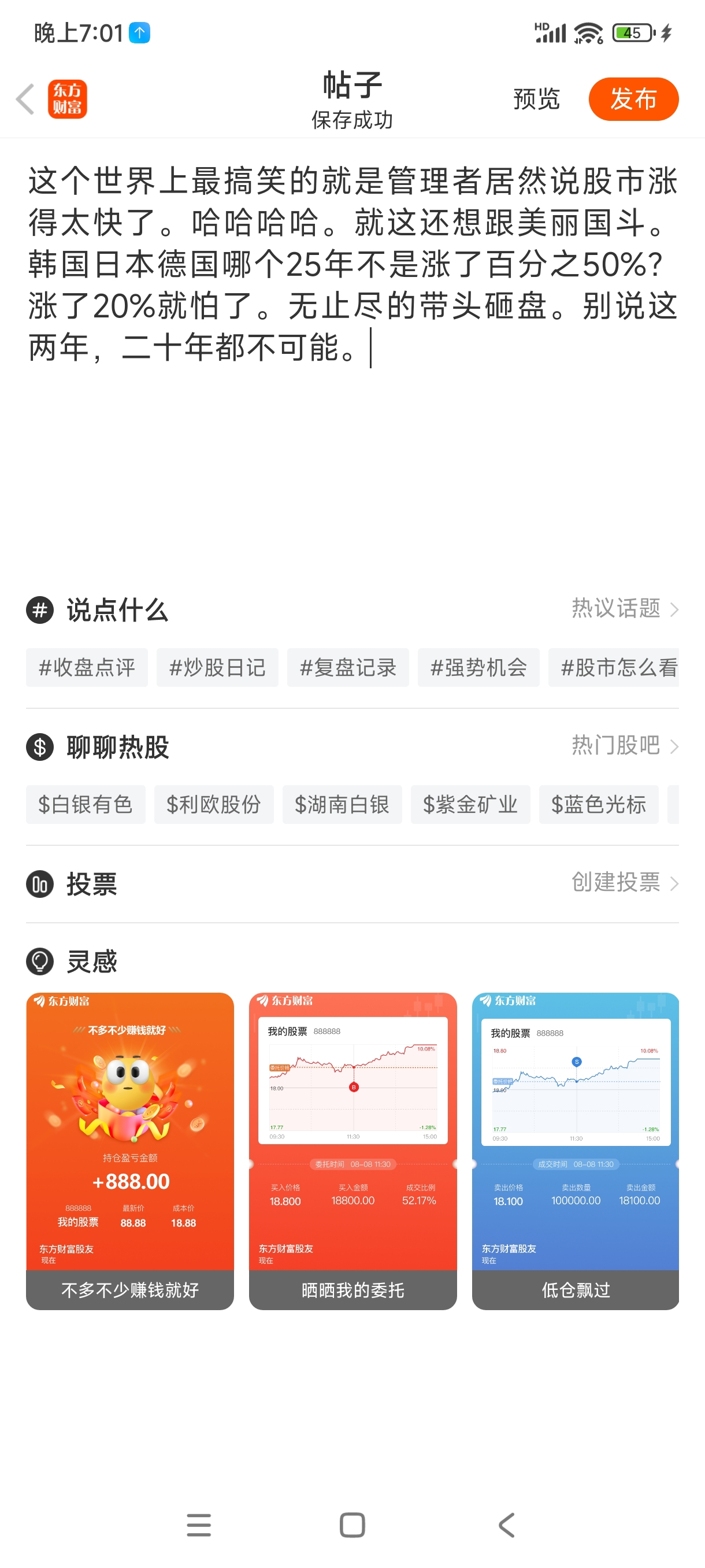 温馨提示: 1.根据《证券法》规定,禁止编造、传播虚假信息或者误导性信息,扰乱证券市场;2.用户在本社区发表的所有资料、言论等仅代表个人观点,与本网站立场无关,不对您构成任何投资建议。用户应基于自己的独立判断,自行决定证券投资并承担相应风险。《东方财富社区管理规定》