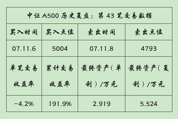 这一笔交易最终亏损4.2%,累计收益率回落至191.9%,若初始投入一万元,单利模式下最终资产为2.919万元,复利模式下为5.524万元。