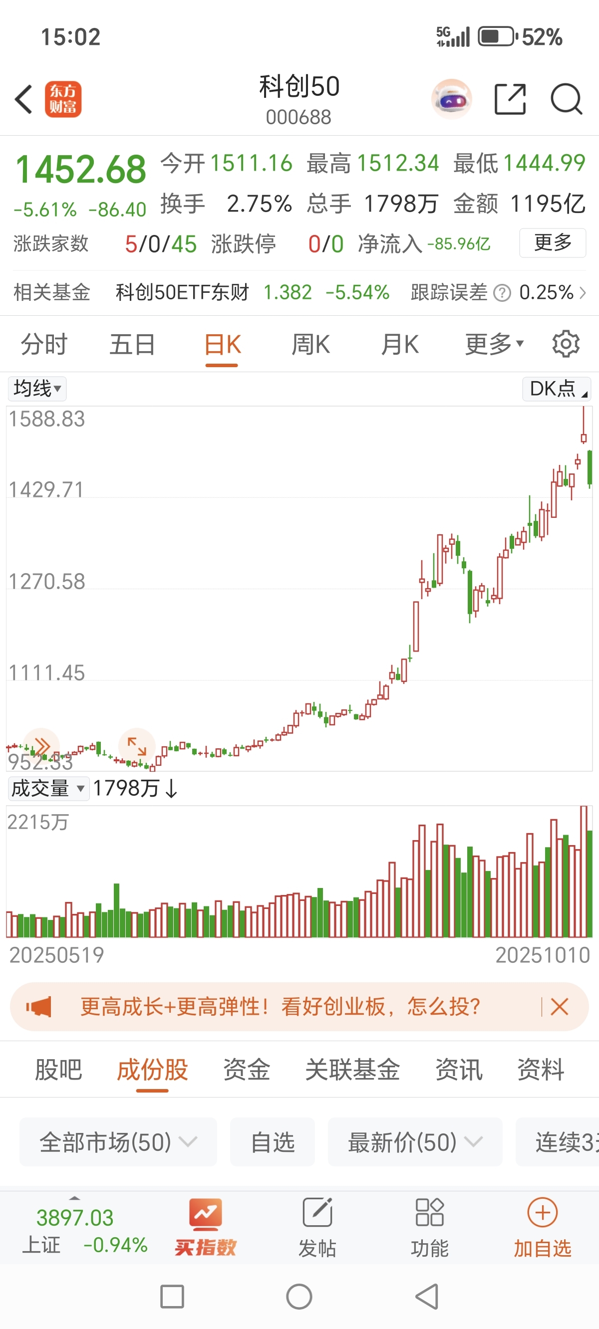 $科创50(SH000688)$ $晶合集成(SH688249)$ $上证指数(SH000001)$ 今天科创50指数暴跌5.61%,我朋友想抄底,他让我帮忙问问,能抄底了嘛?