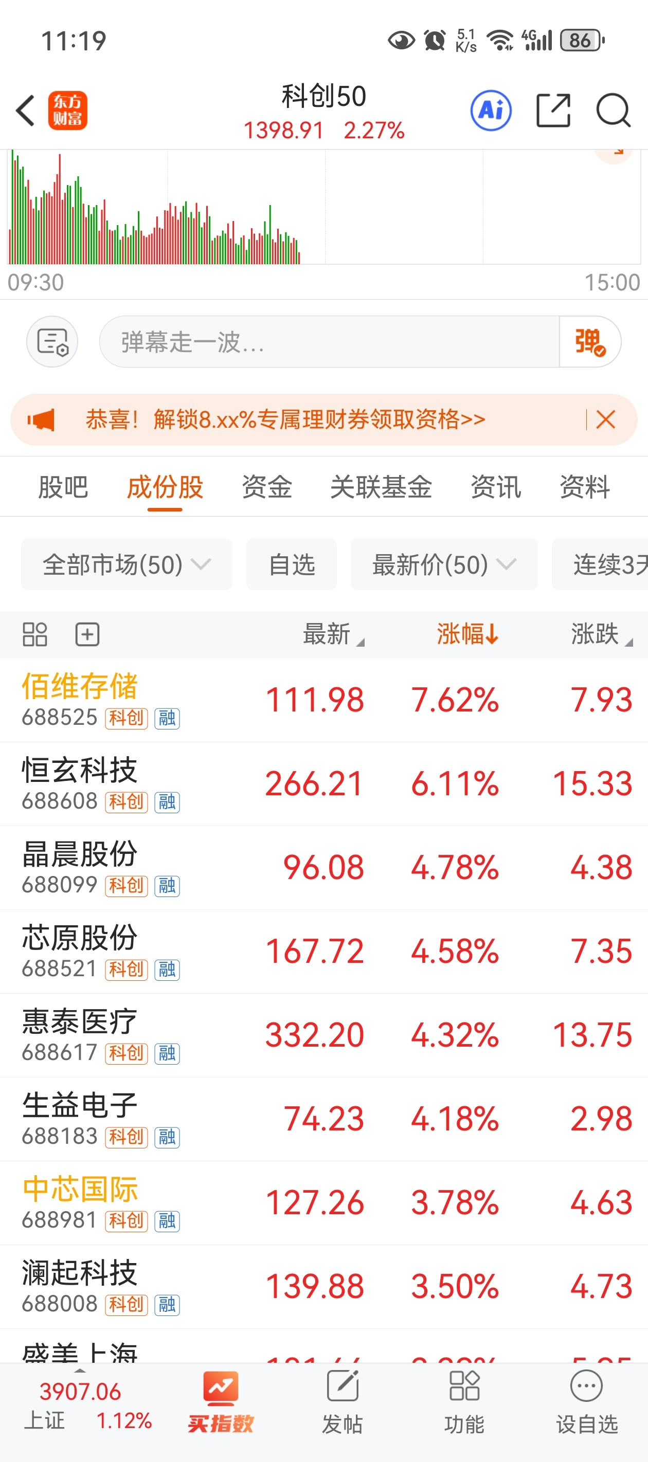 $科创50(SH000688)$ 存储芯片潜力股佰维存储最近这个月在科创50里涨幅靠前,引得资金关注