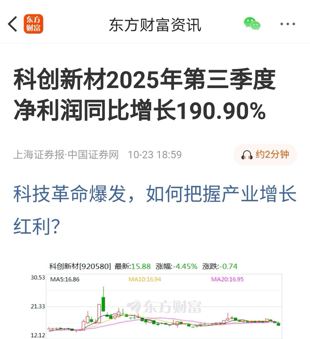 $科创50(SH000688)$ 把握抄底机会,北证板块小市值很多已经下跌几个月,比如科创新材第三代半导体,钠离子电池,碳化硅,业绩大增,总市值才13亿,流通市值才7亿,总不可能不要钱免费送给你,指数涨那么多,抄底北证小市值,总不可能其它大市值永远涨,北证小市值不可能永远跌,跌到极限,必然暴涨