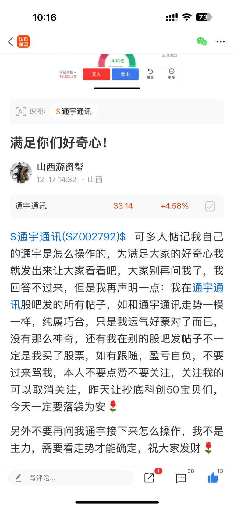 温馨提示: 1.根据《证券法》规定,禁止编造、传播虚假信息或者误导性信息,扰乱证券市场;2.用户在本社区发表的所有资料、言论等仅代表个人观点,与本网站立场无关,不对您构成任何投资建议。用户应基于自己的独立判断,自行决定证券投资并承担相应风险。《东方财富社区管理规定》