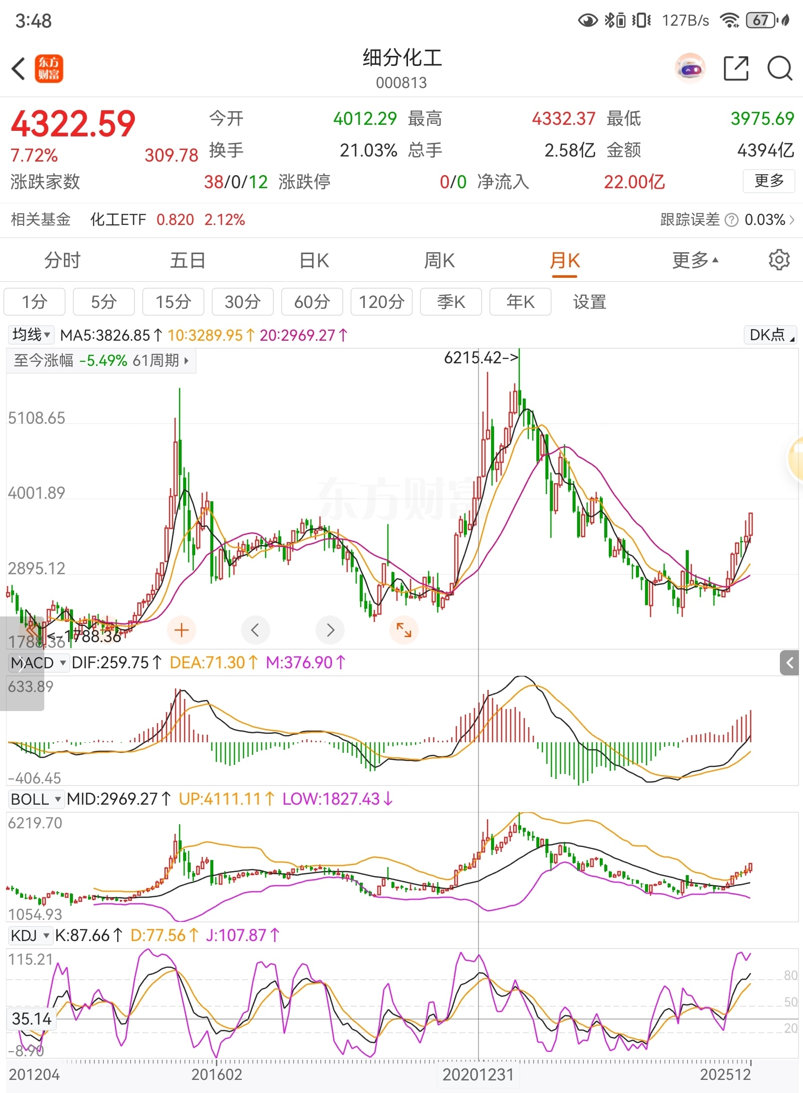 $细分化工(SH000813)$ 五年一个轮回,有点2021年的味道,强行扒车突上去