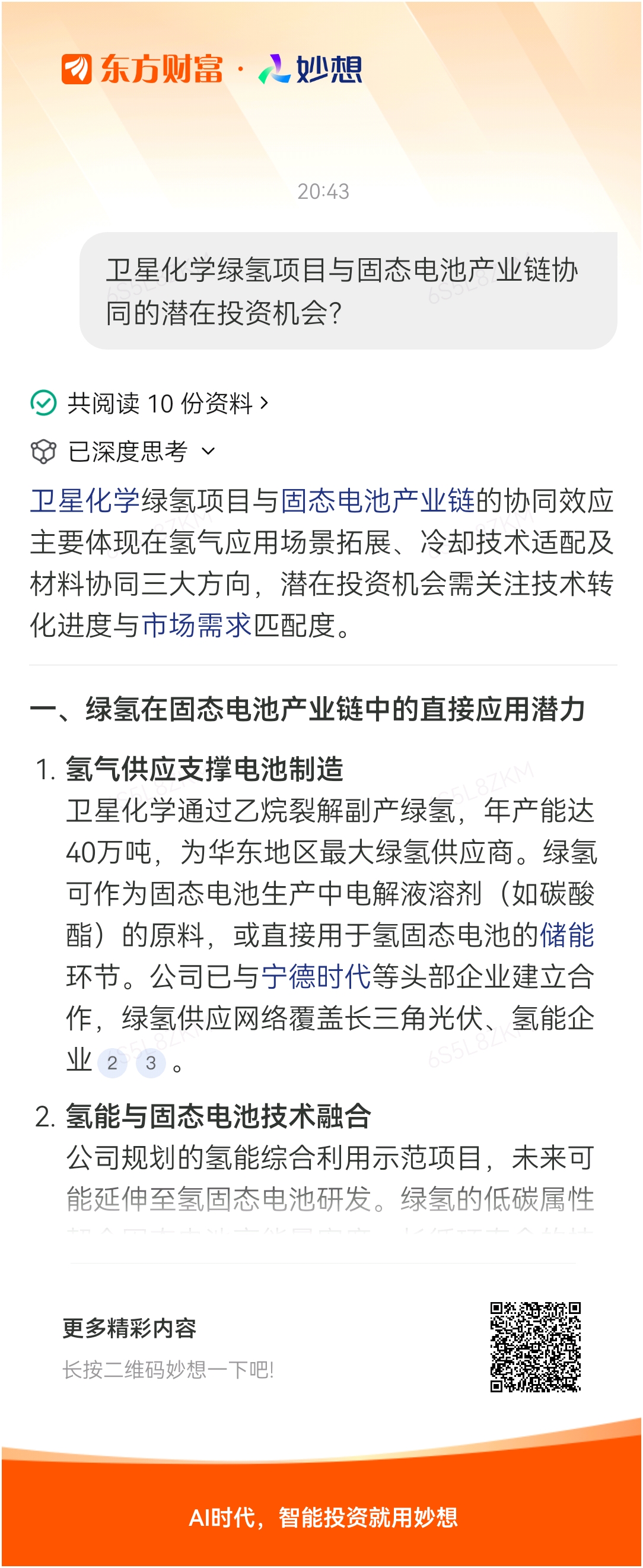 卫星化学绿氢项目与固态电池产业链协同的潜在投资机会?