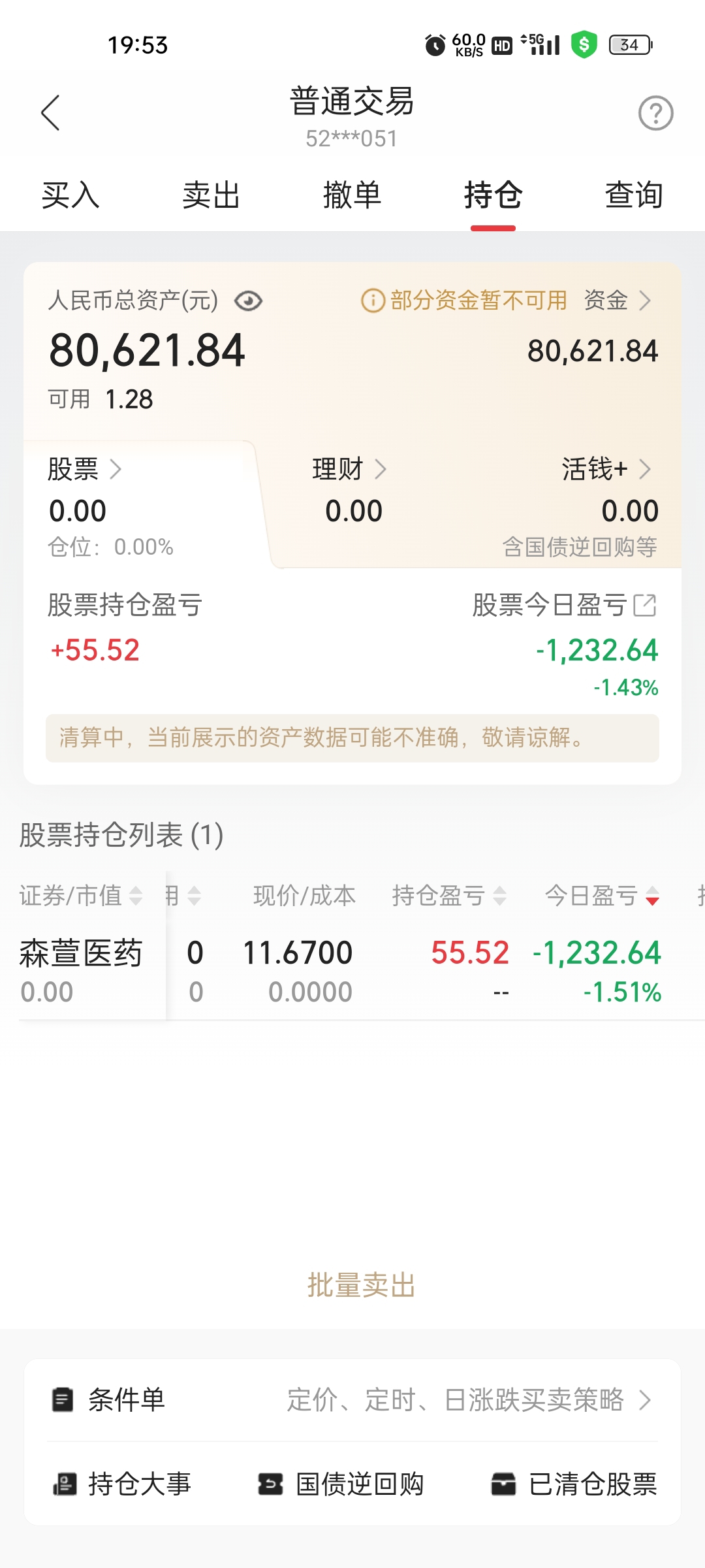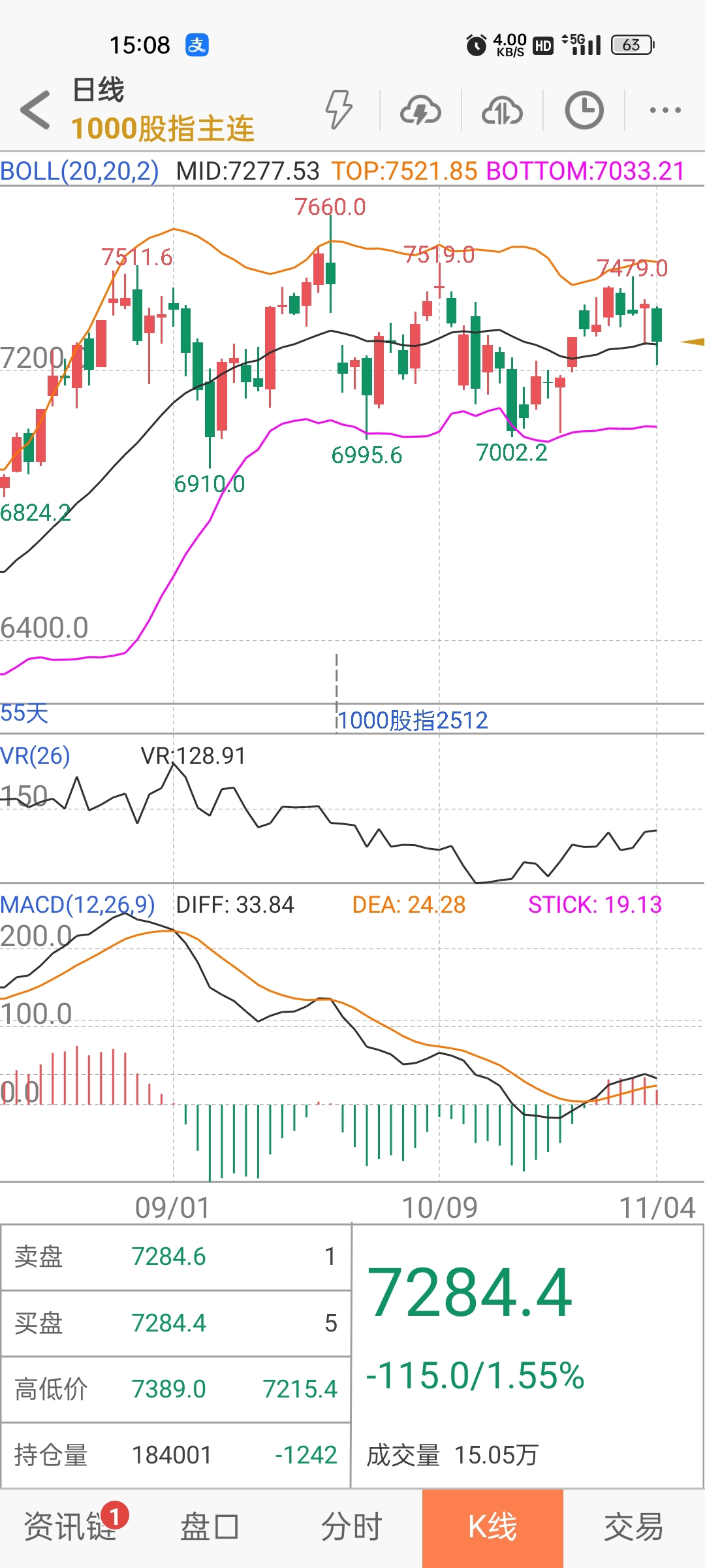 $中证1000(SH000852)$ 股指不尽如人意,这波做的没怎么赚钱,20天几次浮盈到4万过山车,今天回到成本价不得已一键清仓了股票和股指期权。中证1000还是保留了4张,就当清仓了重新开始的300成本进场单吧。
