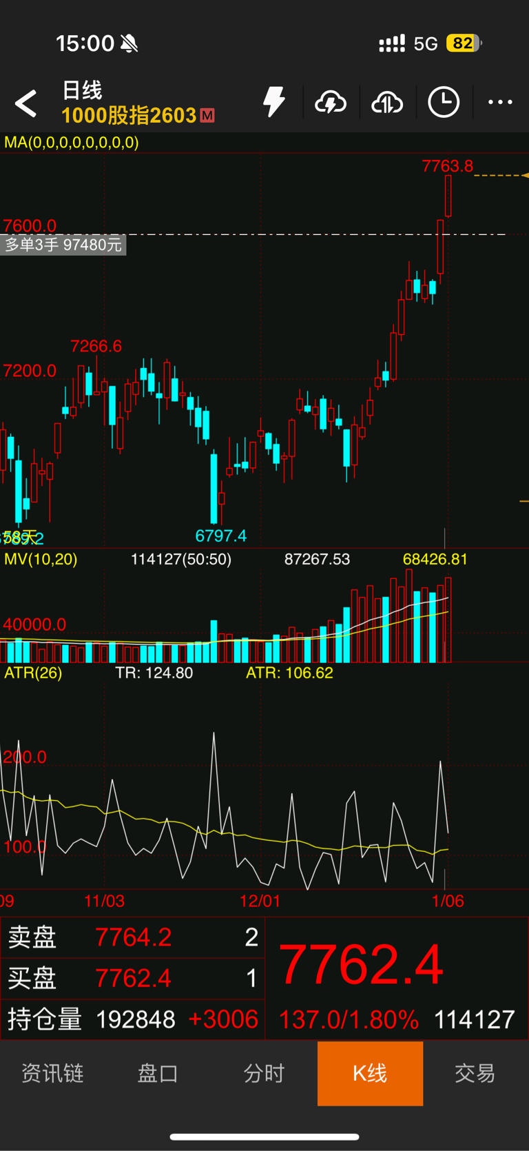 2026.1.6今天没有新操作,还是股指不变,浮盈扩大,继续持有。(个人交易笔记