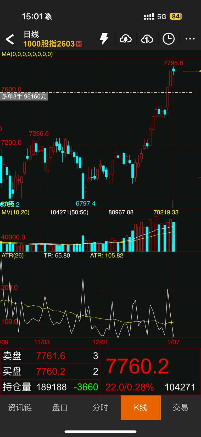 2026.1.7与昨天一样持有股指不变,没有其他动作。一个合格的交易者应该知道什