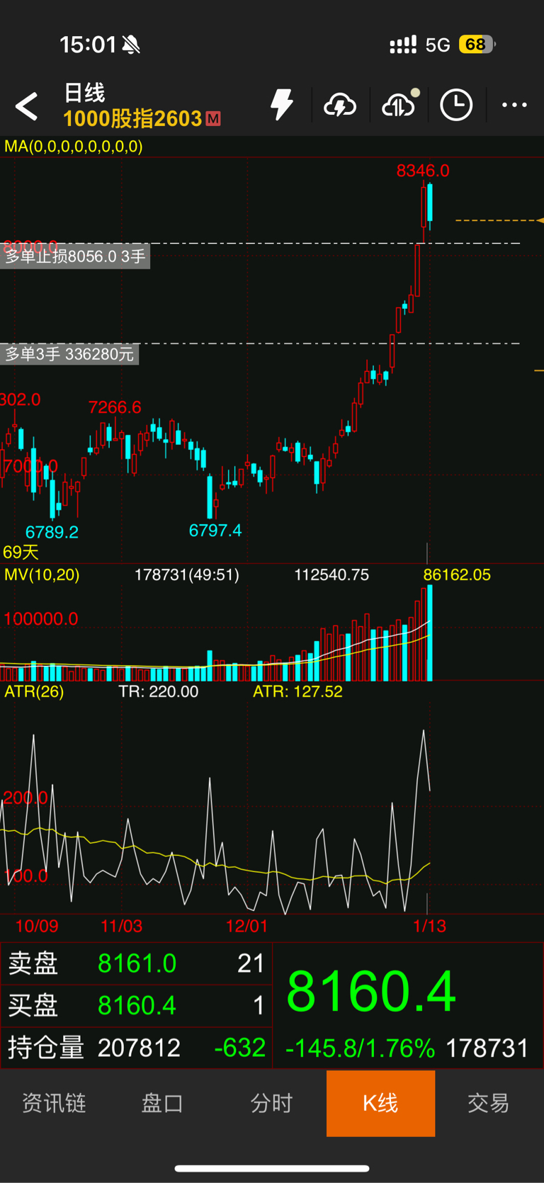2026.1.13镍被推止盈离场;股指浮盈回撤,继续持有。市场永远没有错,市场只