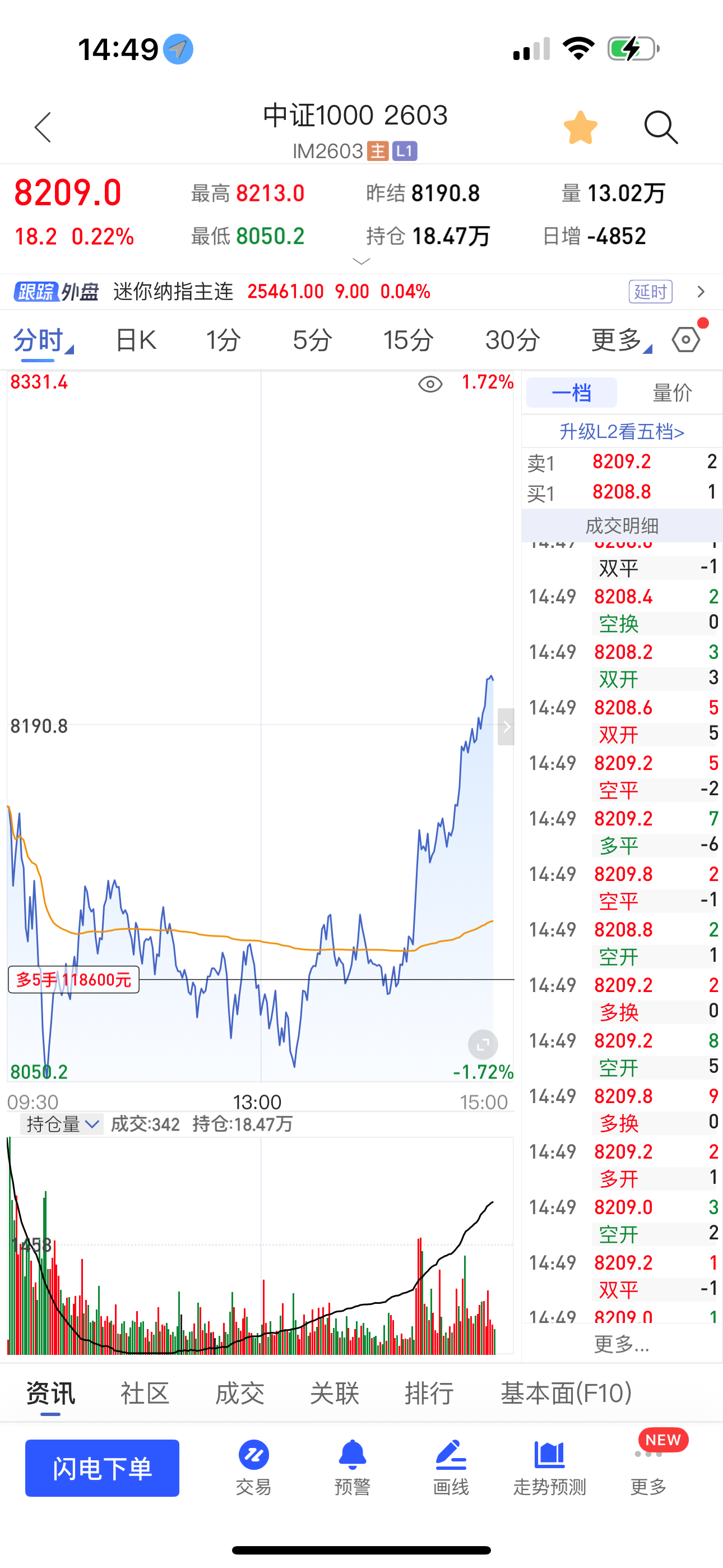 中证1000(im)2603合约,回调做多思路是没问题的,命题继续保持回调做多的思路。
