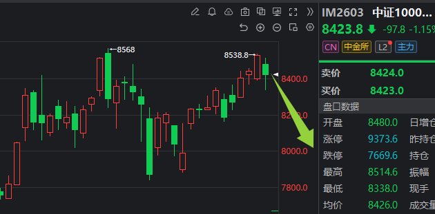 中证1000(im)2603合约,近期我会保持高空思路,目标8000附近。
