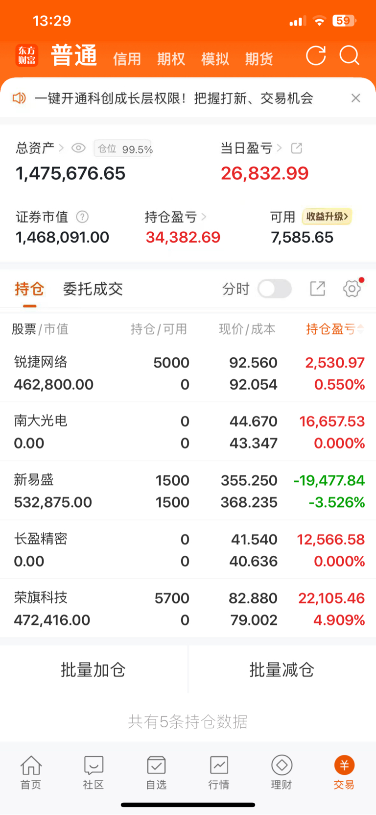 第78天实盘记录|50W投资历程分享今作:•买入:荣旗科技、锐捷网络•卖出:长盈