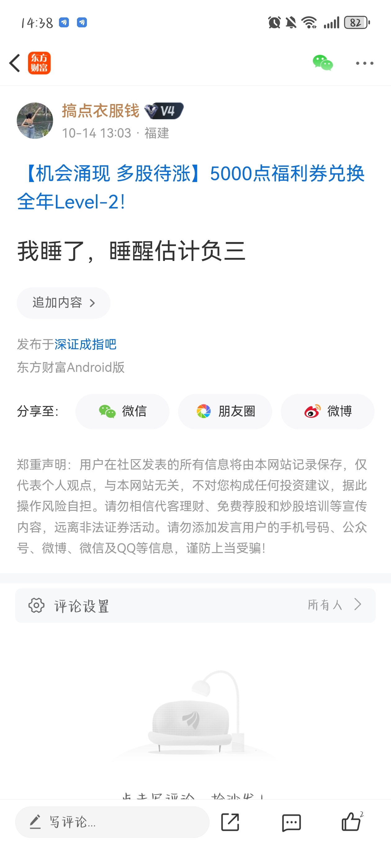 温馨提示: 1.根据《证券法》规定,禁止编造、传播虚假信息或者误导性信息,扰乱证券市场;2.用户在本社区发表的所有资料、言论等仅代表个人观点,与本网站立场无关,不对您构成任何投资建议。用户应基于自己的独立判断,自行决定证券投资并承担相应风险。《东方财富社区管理规定》