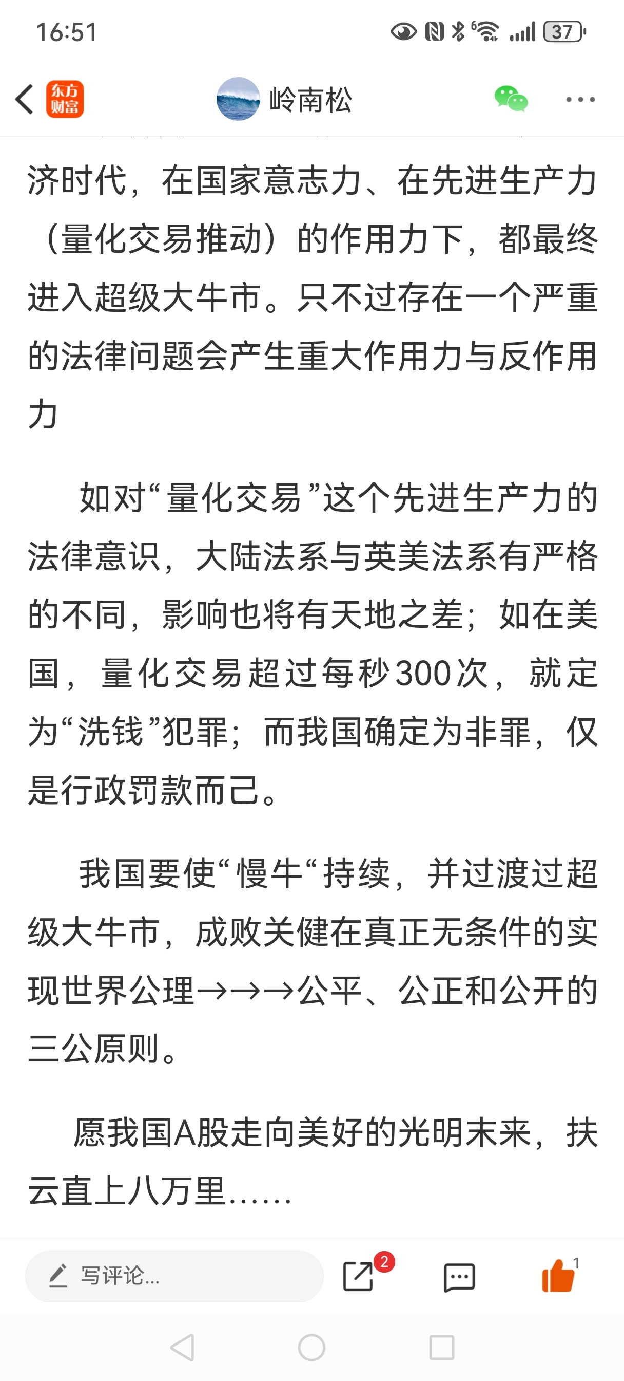 温馨提示: 1.根据《证券法》规定,禁止编造、传播虚假信息或者误导性信息,扰乱证券市场;2.用户在本社区发表的所有资料、言论等仅代表个人观点,与本网站立场无关,不对您构成任何投资建议。用户应基于自己的独立判断,自行决定证券投资并承担相应风险。《东方财富社区管理规定》