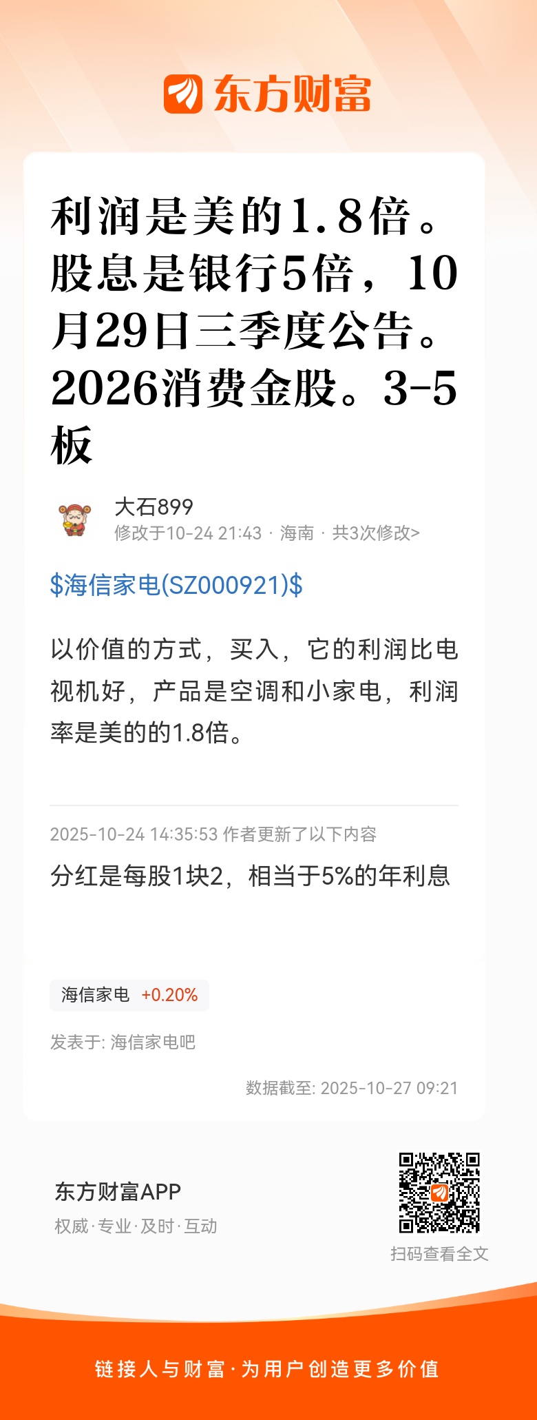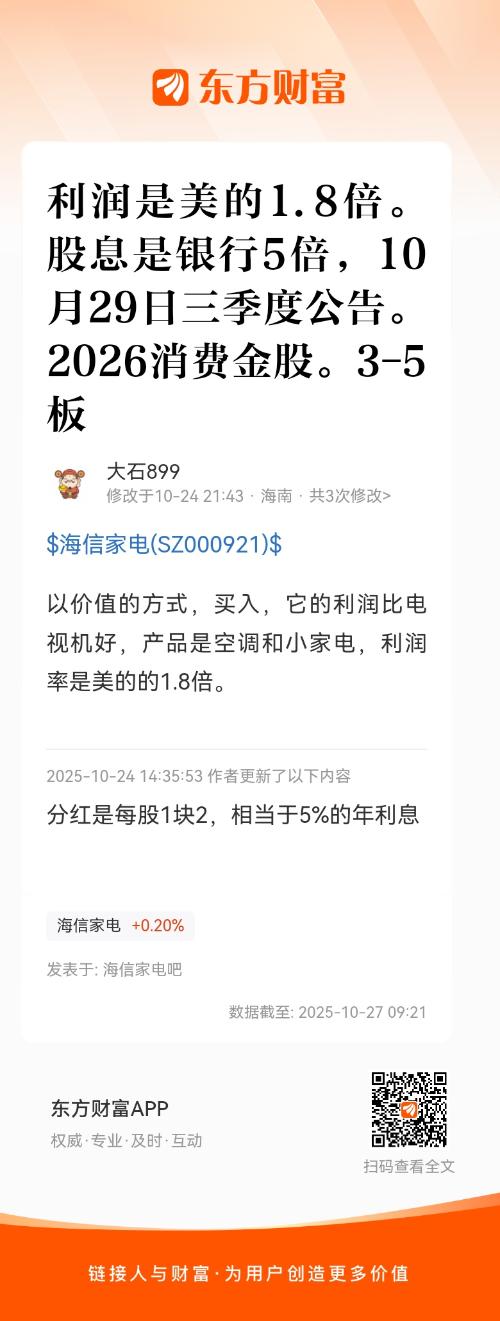 以价值的方式,买入,它的利润比电视机好,产品是空调和小家电,利润率是美的的1.8倍。