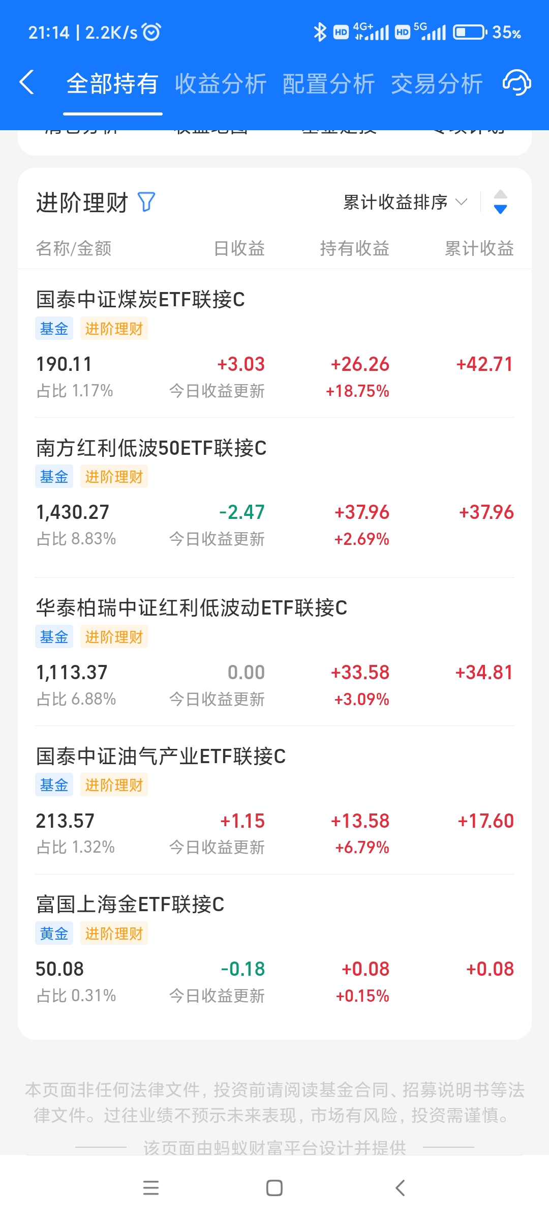 理财第69天,今天赚了+1.53元,累计盈利+193.81元,再度突破个人新高。本以为红利板块会成为今天的顶梁柱,结果却是萎靡不振,但不破前高,我是不会卖的。(今天卖出煤炭一小部分。)$深证成指(SZ399001)$ $煤炭ETF(SH515220)$ $上证指数(SH000001)$