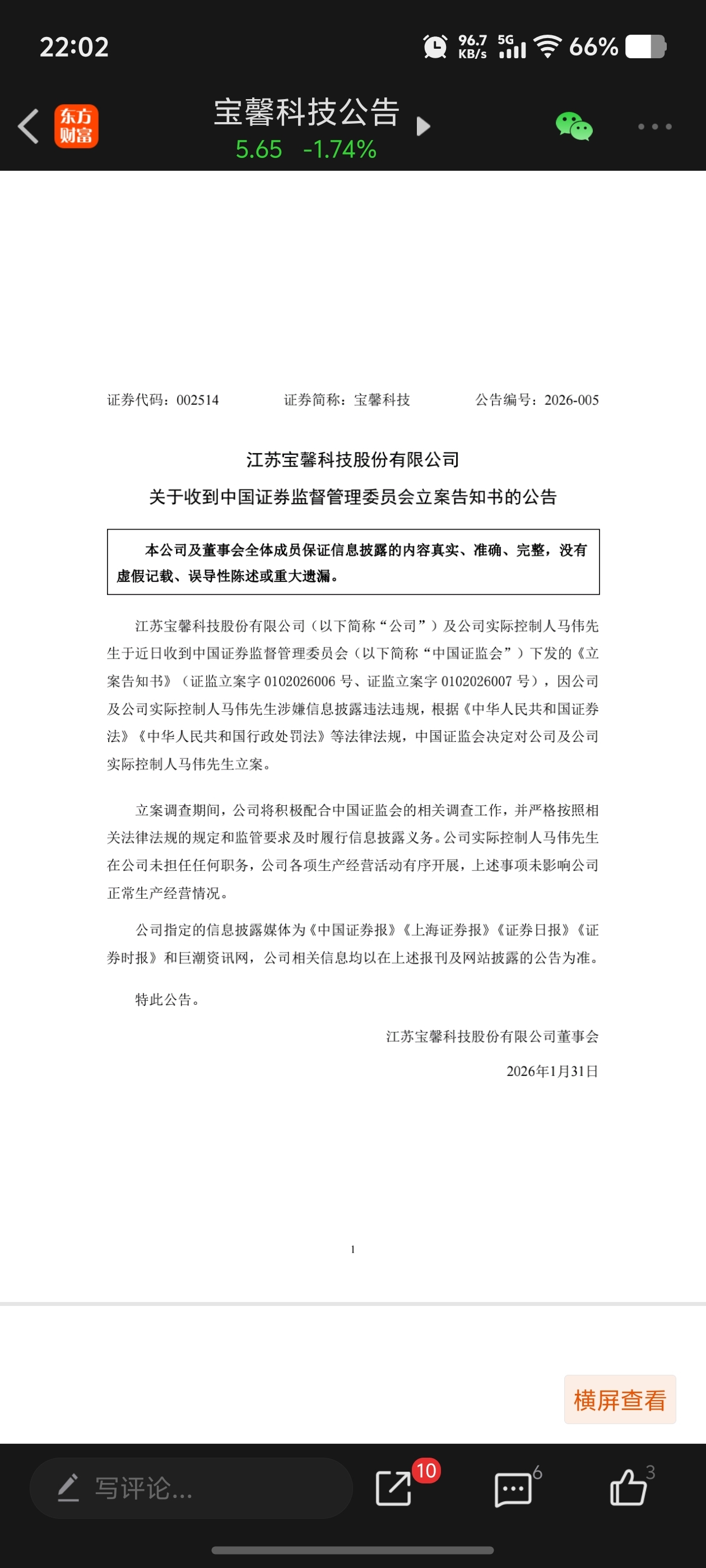 跟上面唯一不同的是他是公司跟实控人马伟同时被立案。