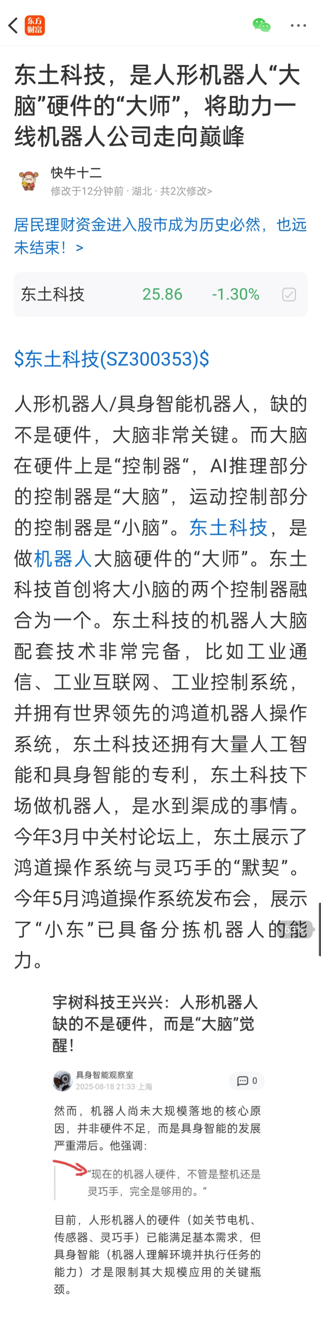 $创业板指(SZ399006)$ 东土科技,具有“微雕师”般能力的智能工控技术,能解决半导体设备的“工业控制系统”卡脖子难题,东土科技的机器人大脑,真正具备高实时、高精准度、高安全、高确定,而且降成本、降功耗、小体积,是高性能人形机器人梦寐以求的机器人“大脑”。