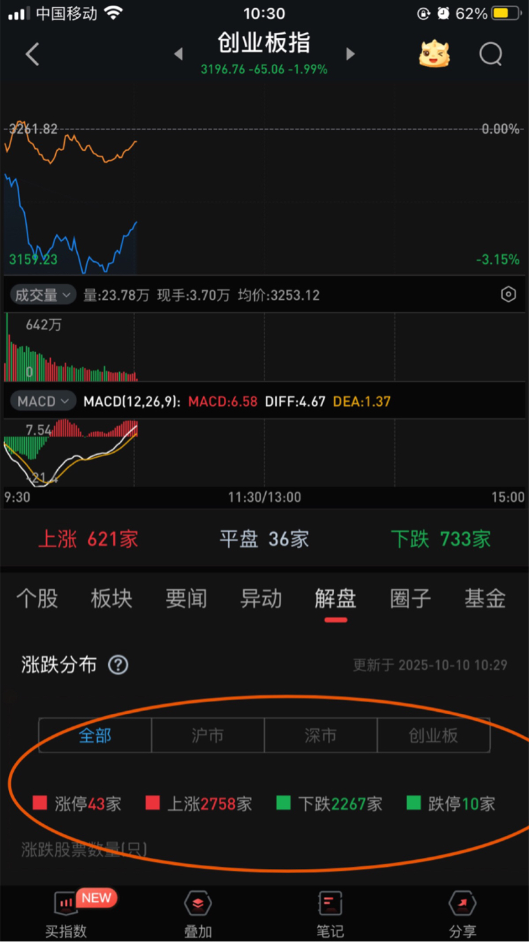 $创业板指(SZ399006)$ 宁徳高位整理拖累指数!今天a股红盘的股超过一半。有一些之前整理中小盘股小幅微红较多。
