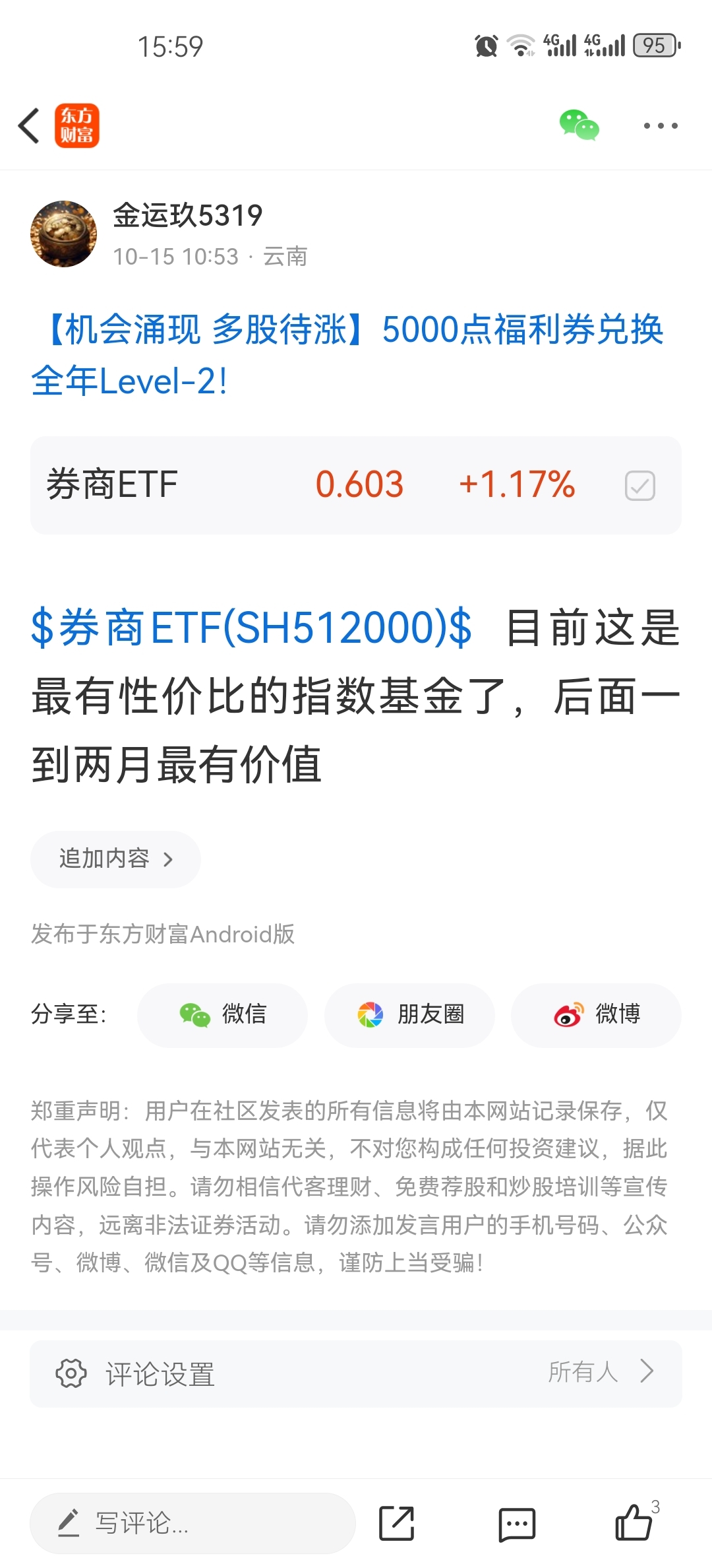 温馨提示: 1.根据《证券法》规定,禁止编造、传播虚假信息或者误导性信息,扰乱证券市场;2.用户在本社区发表的所有资料、言论等仅代表个人观点,与本网站立场无关,不对您构成任何投资建议。用户应基于自己的独立判断,自行决定证券投资并承担相应风险。《东方财富社区管理规定》