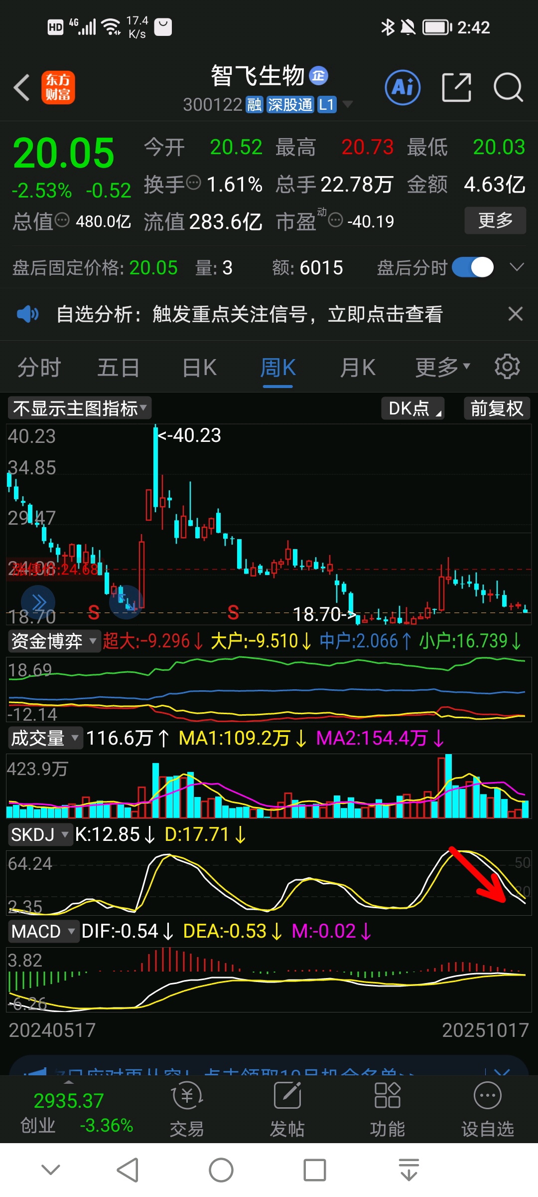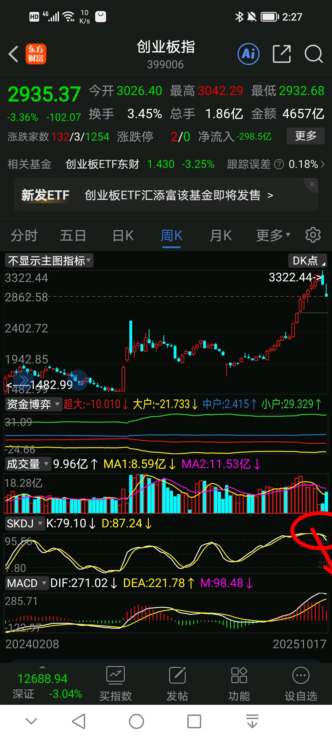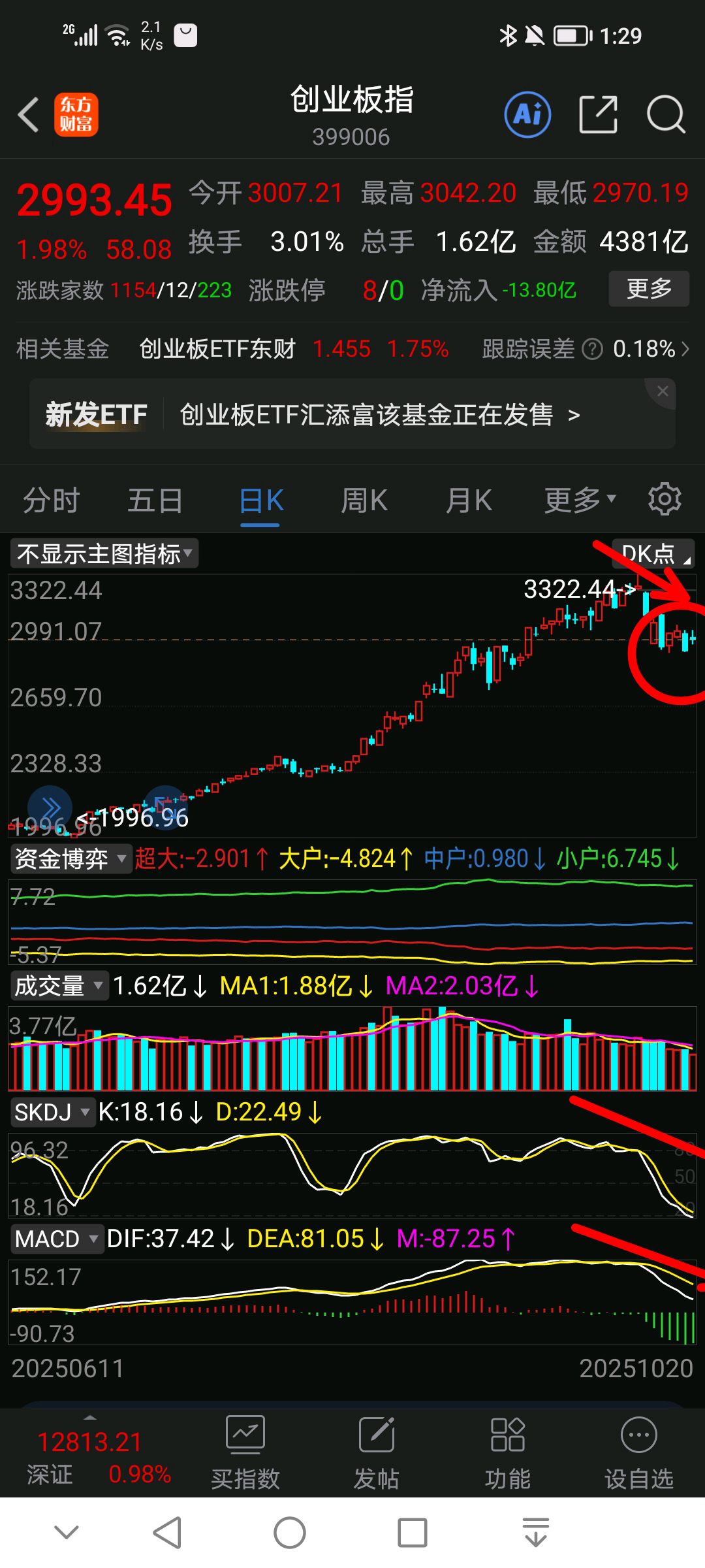 创业板指数:9月底我们左侧预判提示风险,10月份出现右侧确认周线级别skdj技术面高位调整开始,类似创业板指数技术面的可能年底过年前可调整空间有点多和时间有点长,如果周线已经调的差不多的?年前的风险已经提前释放,暂时变得相对安全,或许如果年前不涨会是主力反复吸筹的洼地,AI产业链暴涨过的注意风险释放是周线级别的右侧确认开始,后面很可能还有极速快速的大跌暴跌,现在觉得跌的不多?或者似乎觉得有的跌的多?更多更大的下跌在年底随时会来伺候持股的股东们…